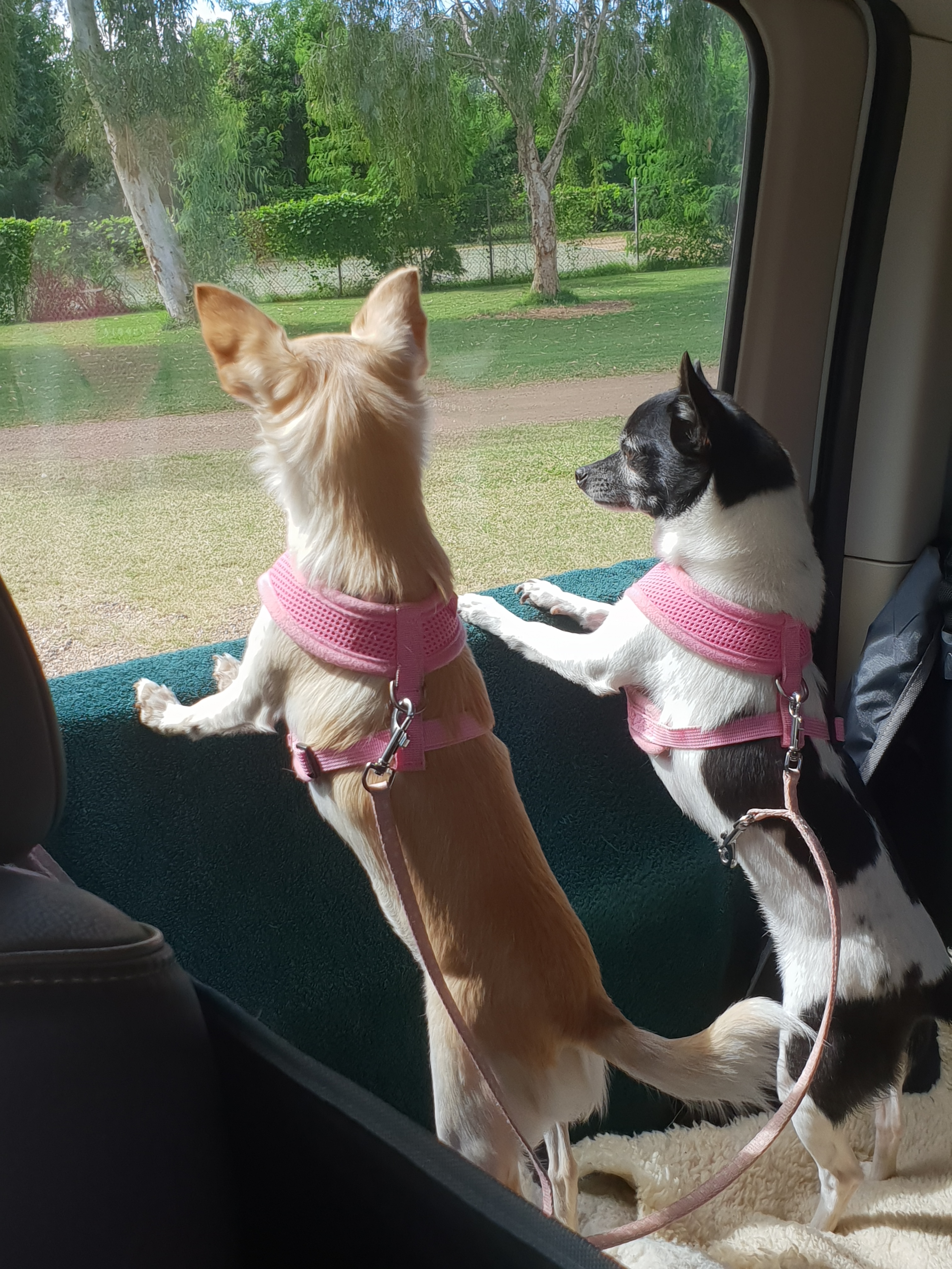 As we were heading back to go the other way we spotted some cages, we wondered what they were used for and I reckoned it was where the working dogs live. As we turned to leave we saw a great sight, the working dogs coming home after a full days work. The Ute was driving slowly and the dogs all running behind. We got into the car not knowing if they were friendly but the bloke with them told us they would be fine, so we got out and took photos. The dogs looked very healthy and even looked as if they had enjoyed their day, mind you they were about to get fed!