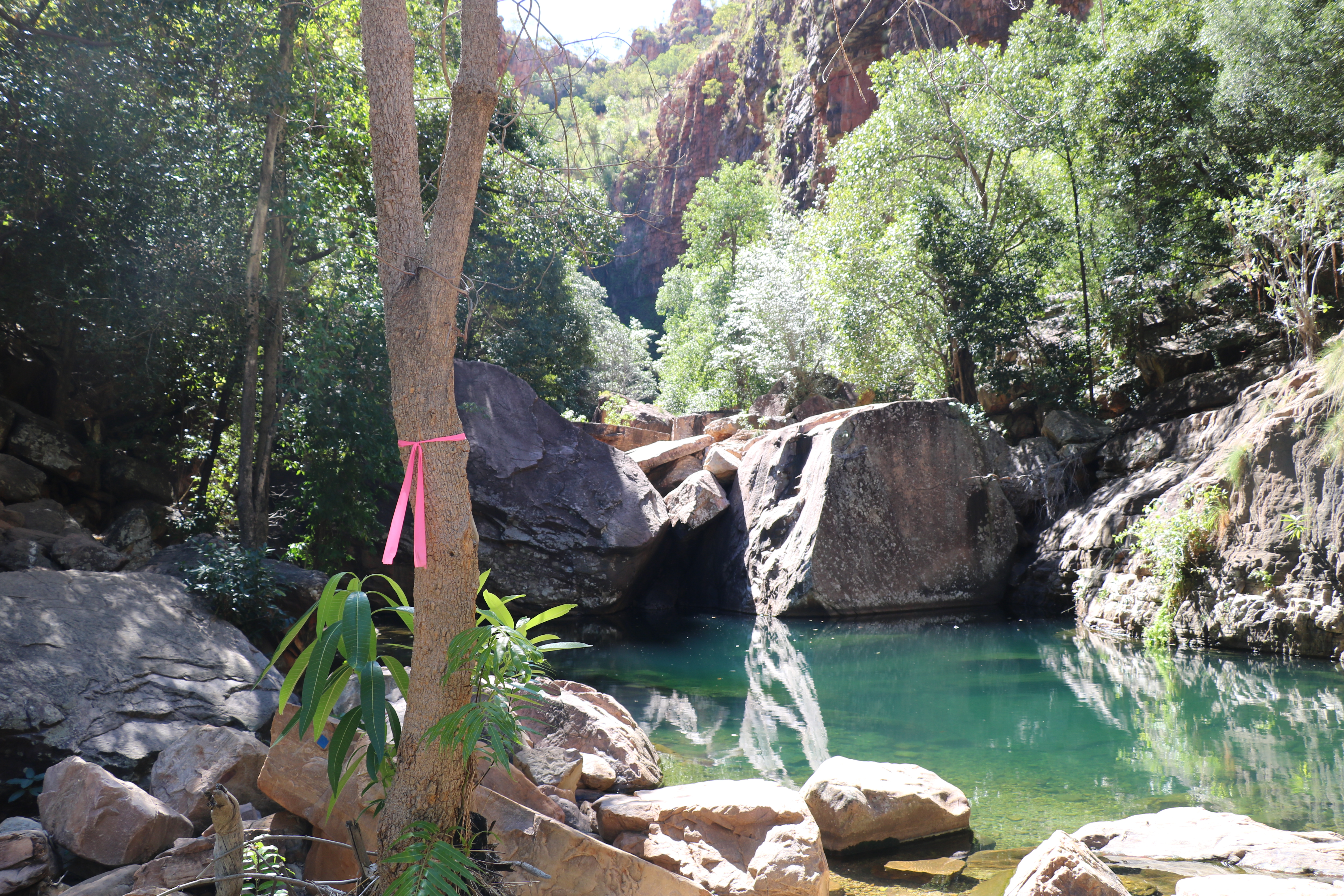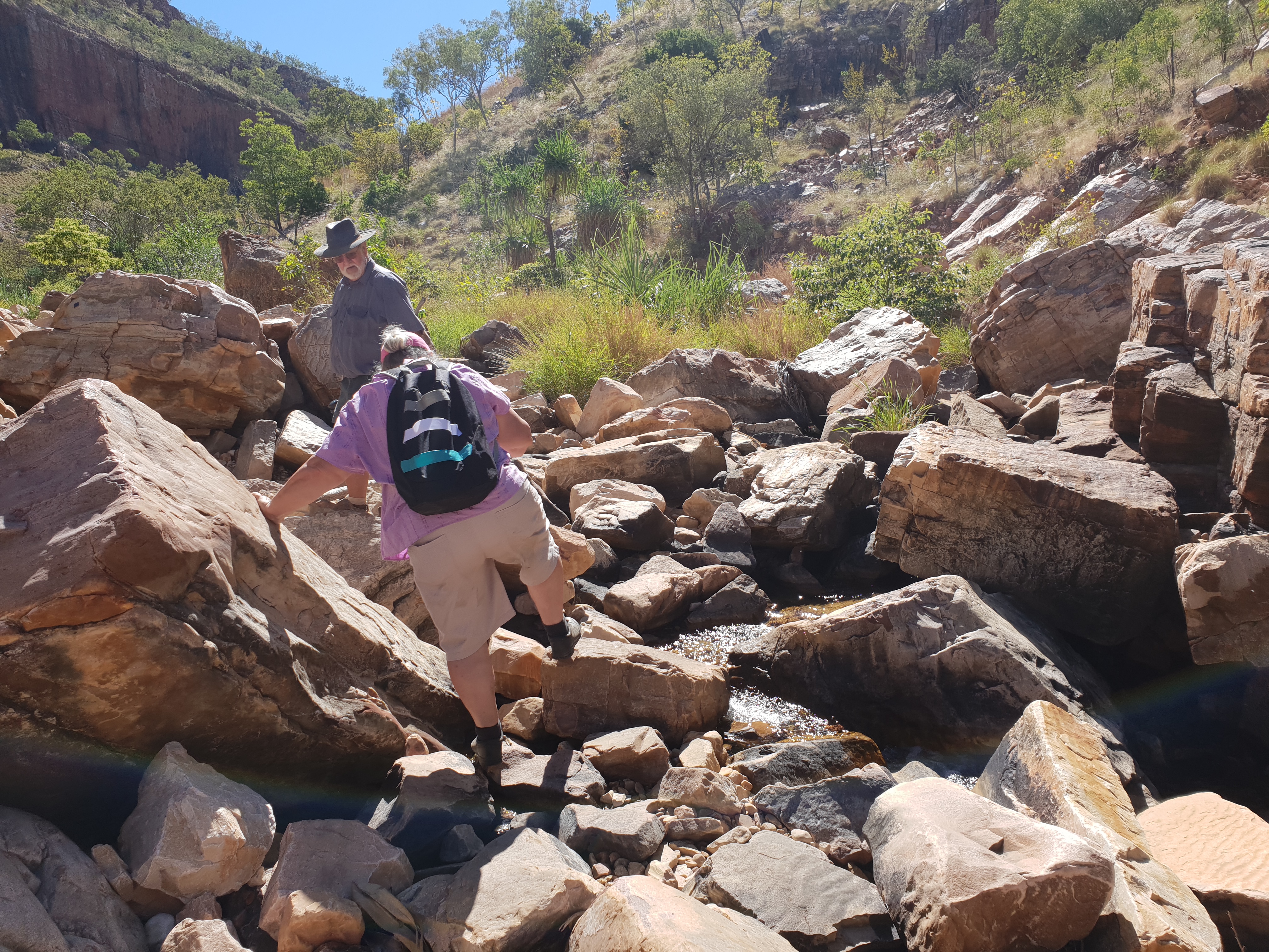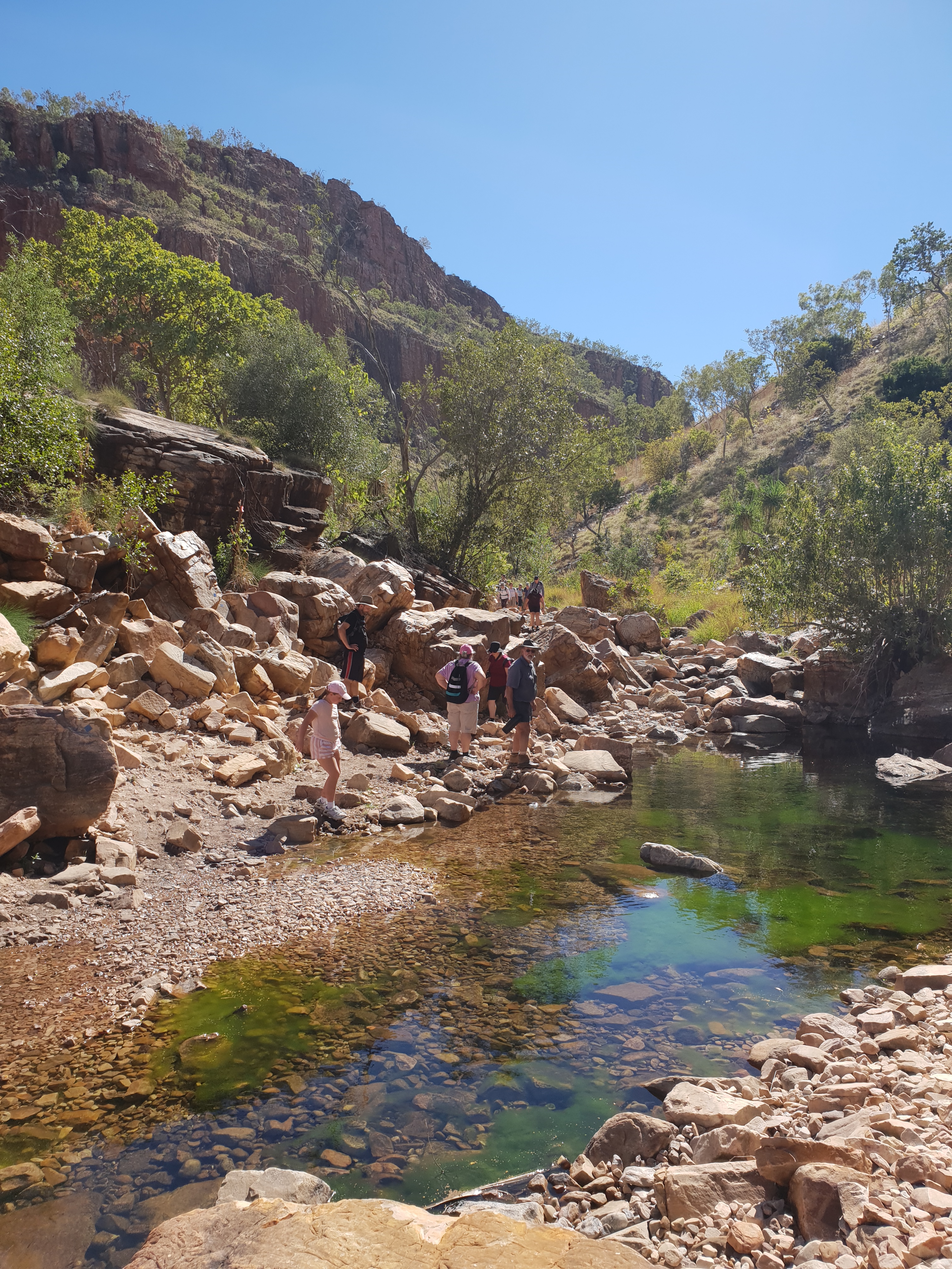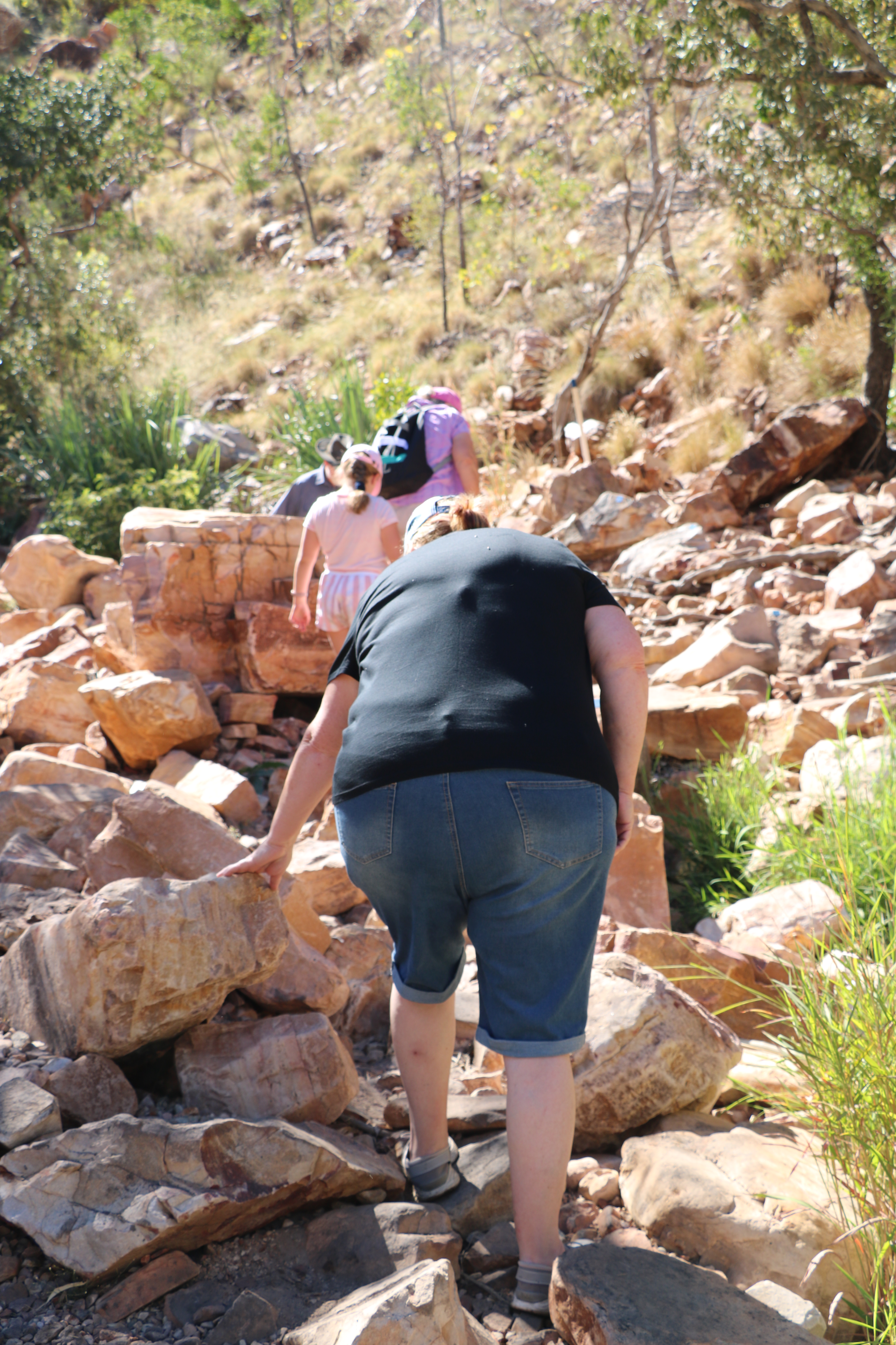 The next day Jock and I got up early and headed for Bell Gorge, it wasn’t terribly hard to walk out there but difficult all the same. We had Michelle’s little esky stool with us so I was able to sit when I needed to. Bell Gorge was just lovely I could have sat there all day just soaking it all up, listening to the small amount of water coming over the falls and heaps of parrots, Jock and I were the only ones there for about 30 minutes.