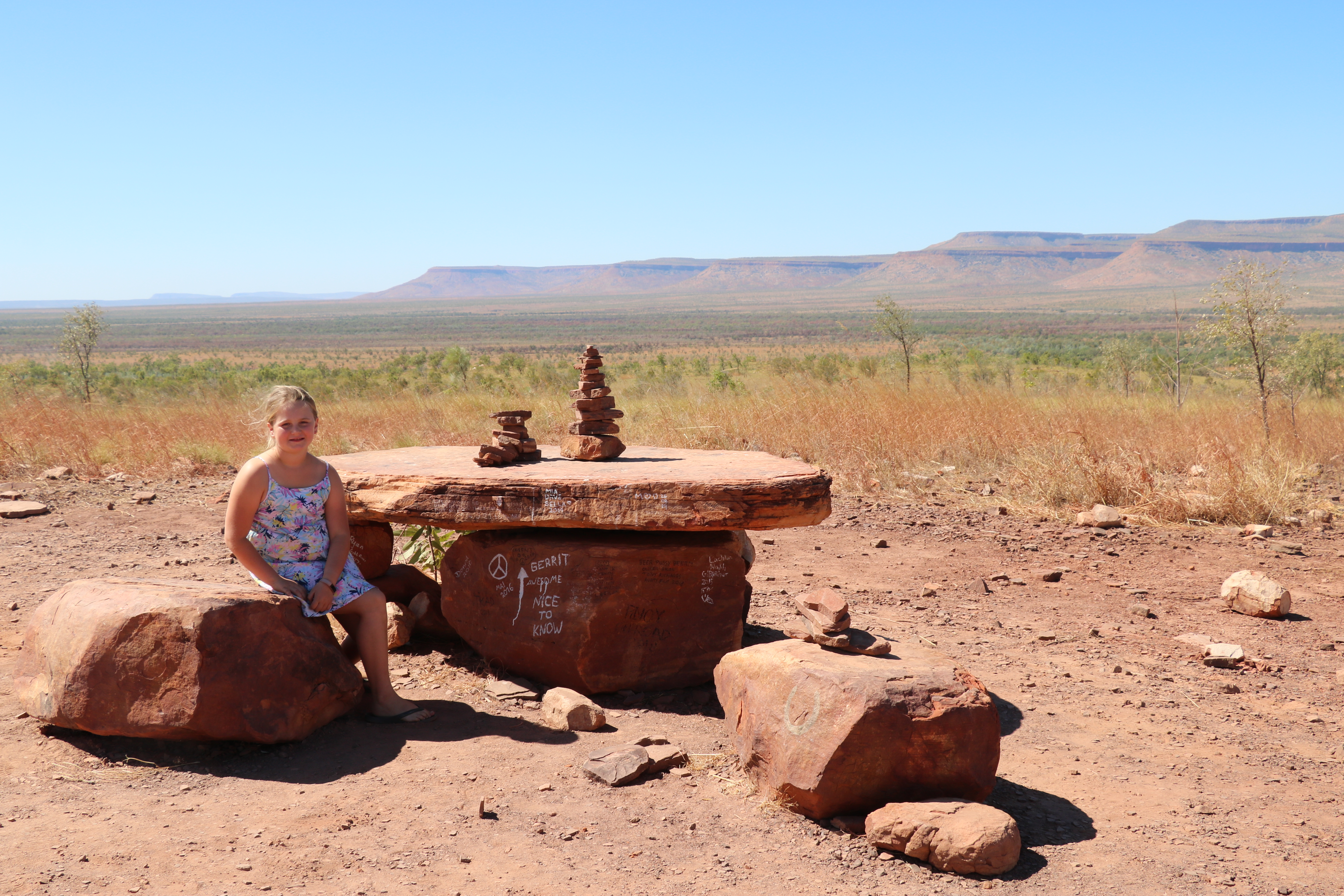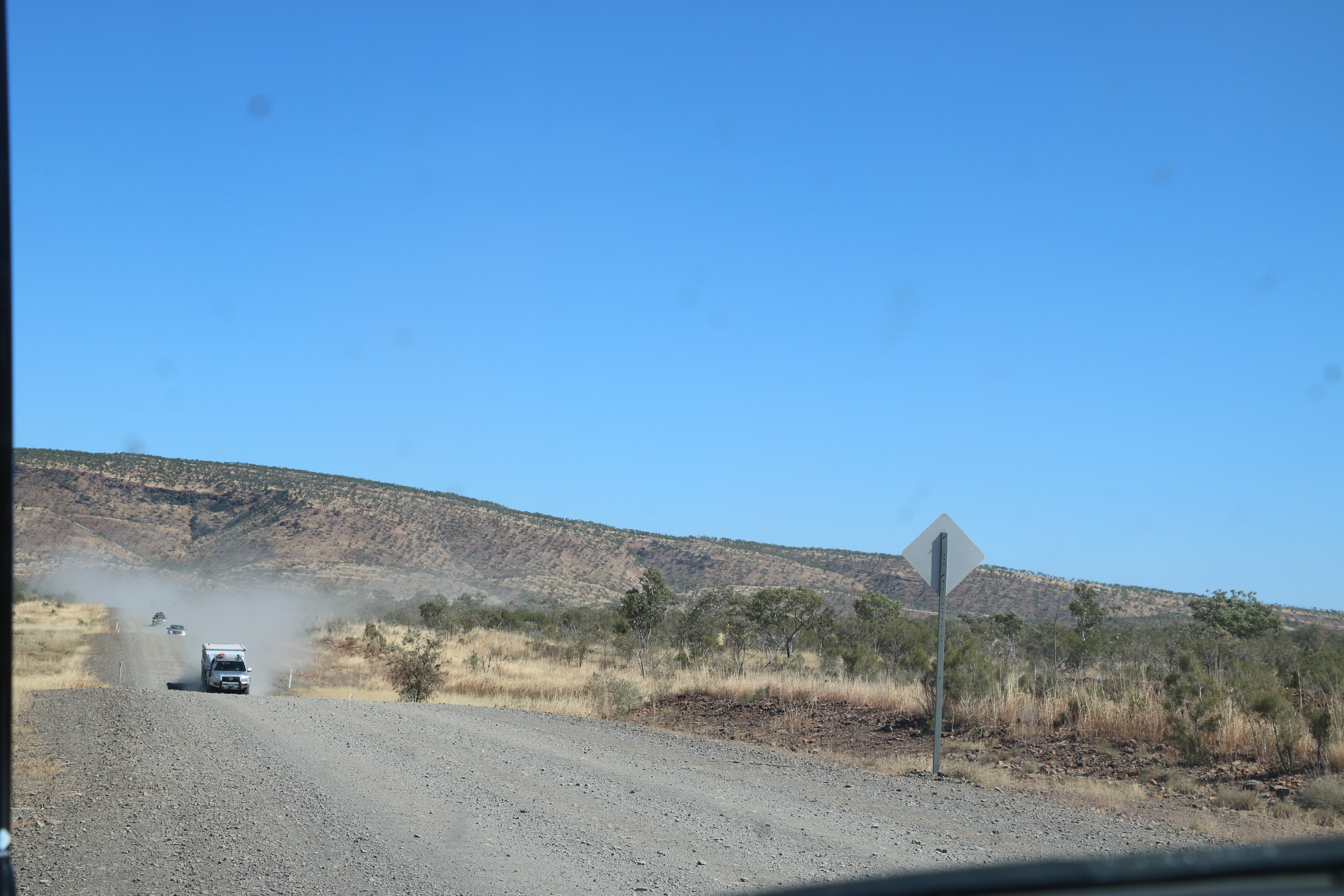 After a nice lunch stop we were back on the road, it really is dusty now a horrible blackish grey dust as opposed to the red dust. For some reason this one seems to be getting in to everywhere. We passed the Bell Gorge turn off, this was our next place to visit, but for now we would go and set up camp and take it in turns to go to the Gorge because we cannot take the dogs. March fly Glen, yet another free camp. We set up over the back in an open area right next to a huge termite mound. Another couple pulled up next to us, Chris and Mick from Melbourne, they have been on the road for nearly 12 months and loving every minute. They were very friendly and joined us at the fire in the evening.