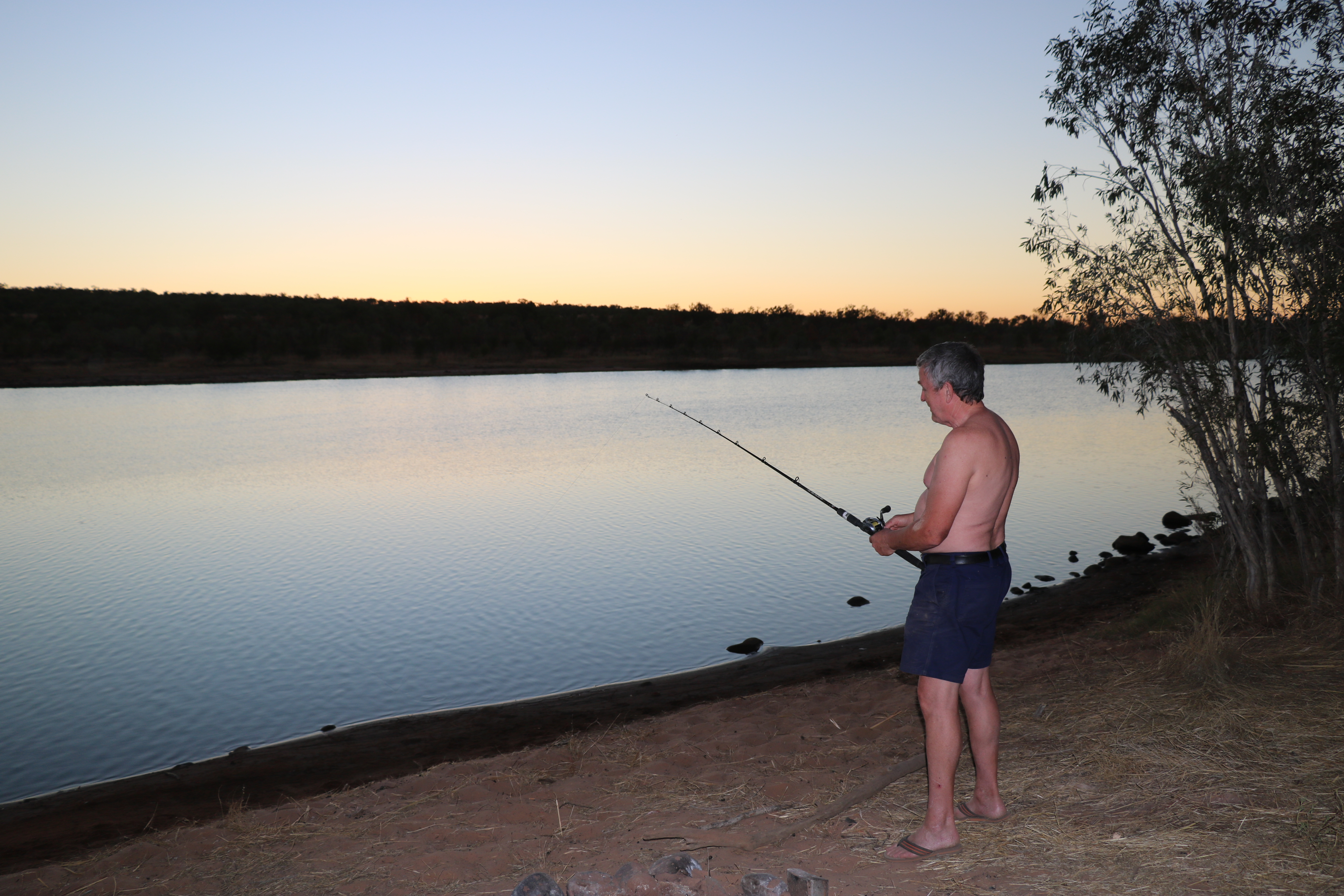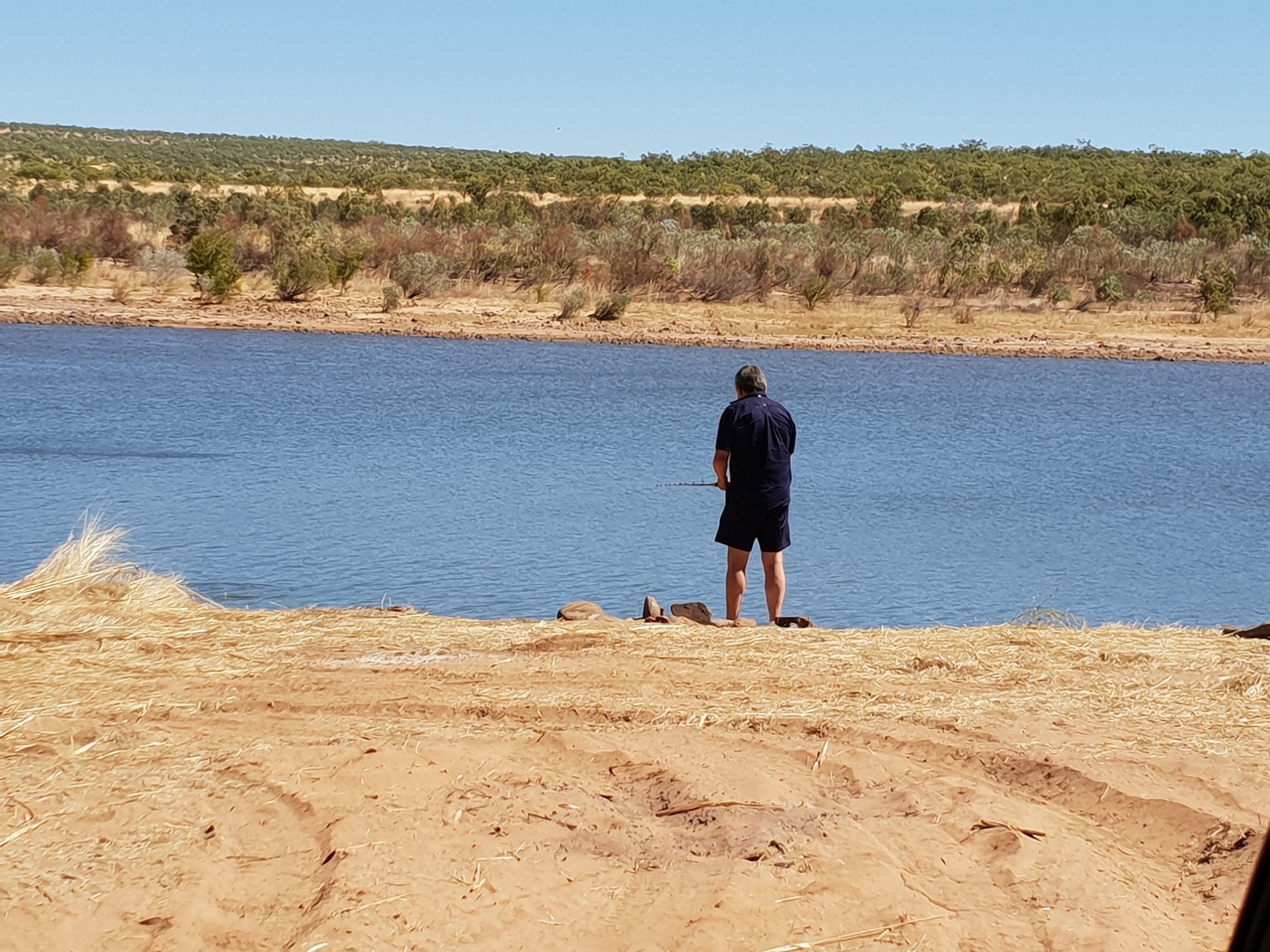 This morning Michelle and Trevor headed off to Bell Gorge. Jock and I stayed to watch Ruby their dog and the caravan. Mick and Chris took advantage of Jock and I being at camp all day and left their van with us so they could go off and explore. Jock played about with his leather and started to practice plaiting leather for a belt. I wrote post cards and got up to date with my diary. Michelle and Trevor were back by mid day and had loved the Gorge, Michelle reassured me that I would manage the walk in to Bell Gorge. So Jock and I will go tomorrow, it is too hot in the afternoon to be starting out on a trek of any kind. Trevor was having trouble with his batteries in the van so Jock helped him change them.
