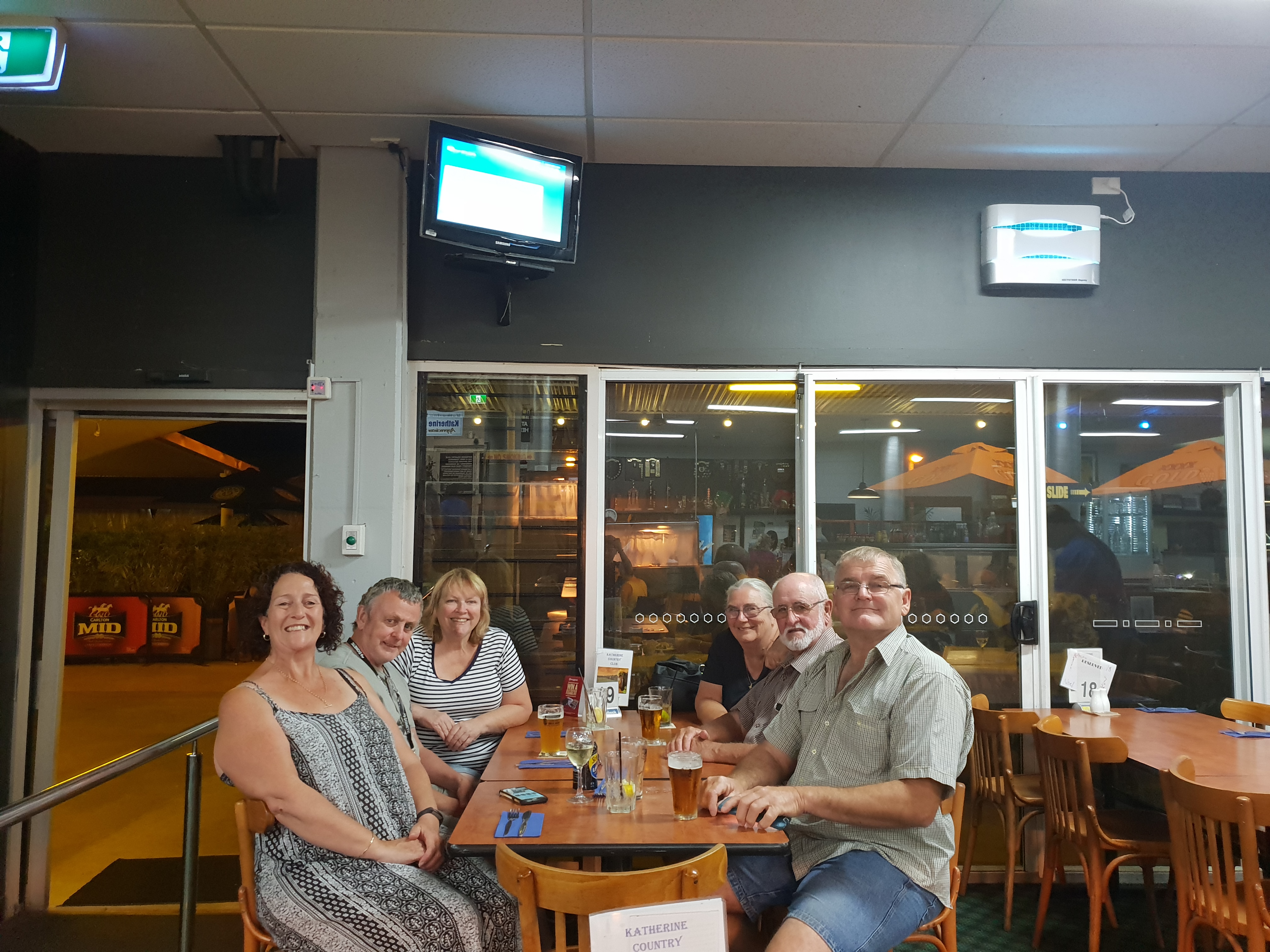 We parked up in the Boab caravan park in Katherine and decided to go out for dinner at a local sports club. Trevor had had the all clear from the hospital although had badly bruised himself internally. I had my bite looked at, it is a spider bite!! I have antibiotic cream for it, so hopefully it will start to heal now. We called the curtesy bus and headed out to the sports club. We all thought that as it was so packed out the food must be good, the line up for ordering was at least half an hour long. It was a shame but what I had I was not impressed with and neither were Mick and Joy. Oh well, at least none of us had to cook or clean up. It certainly was a great place for people watching, so many different characters and so many different ways to dress!!