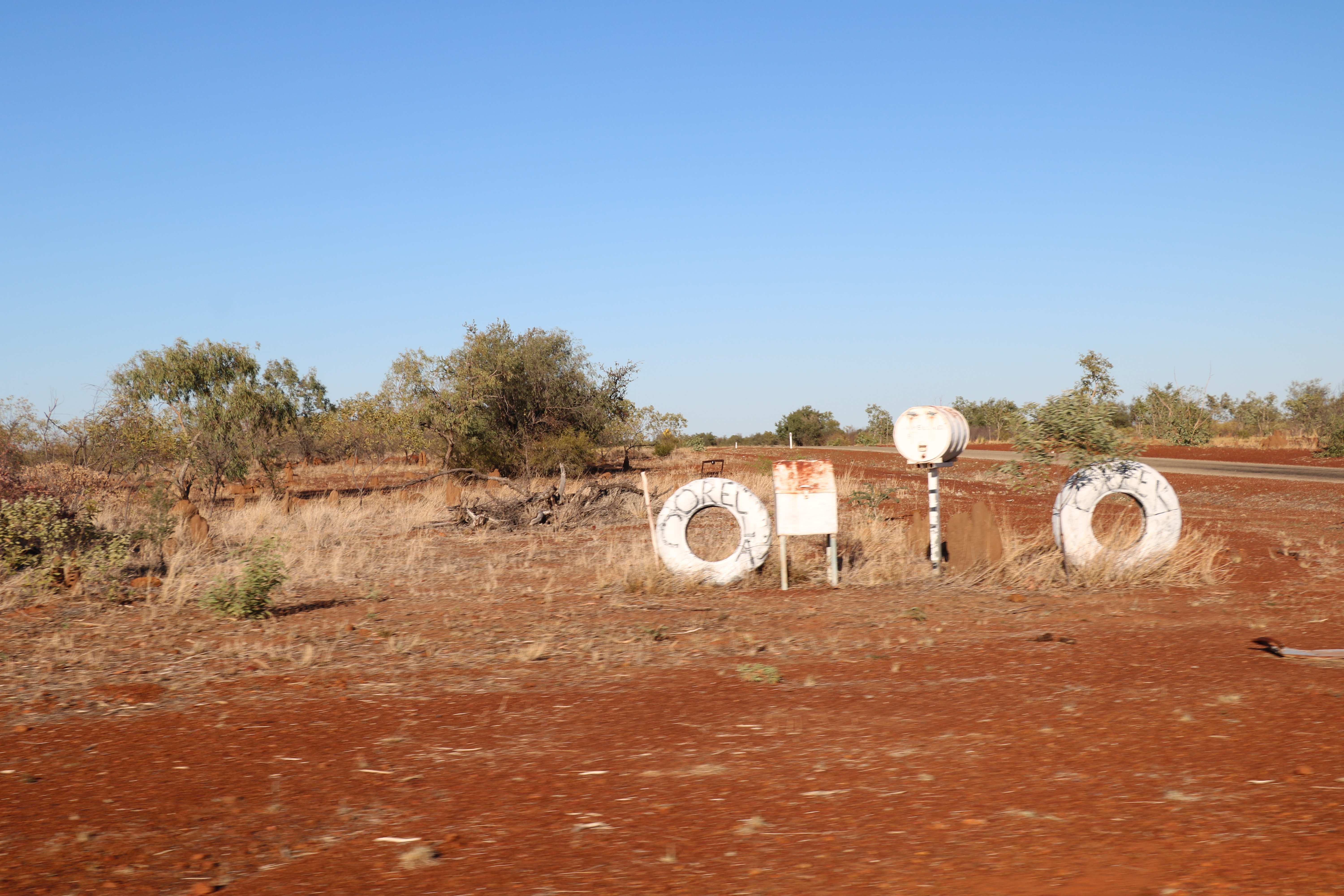 Katherine was our next stop we needed to get there as Trevor had had a fall and hurt his back and ribs, we needed to get him to the hospital to get checked out. I also had a bite on my leg that was looking infected so needed to see someone. We stopped in Mataranka for lunch, it has certainly changed somewhat since I was last here. The drive was brilliant, some people say not much to see but I have to sit and watch out of the window as we travel, cattle, birds, ant hills, scenery so much to take in. Some people have “dressed” the ant hills, they do look funny. I would like to stop and put something on one myself but there is never a good safe place to stop with the caravan.