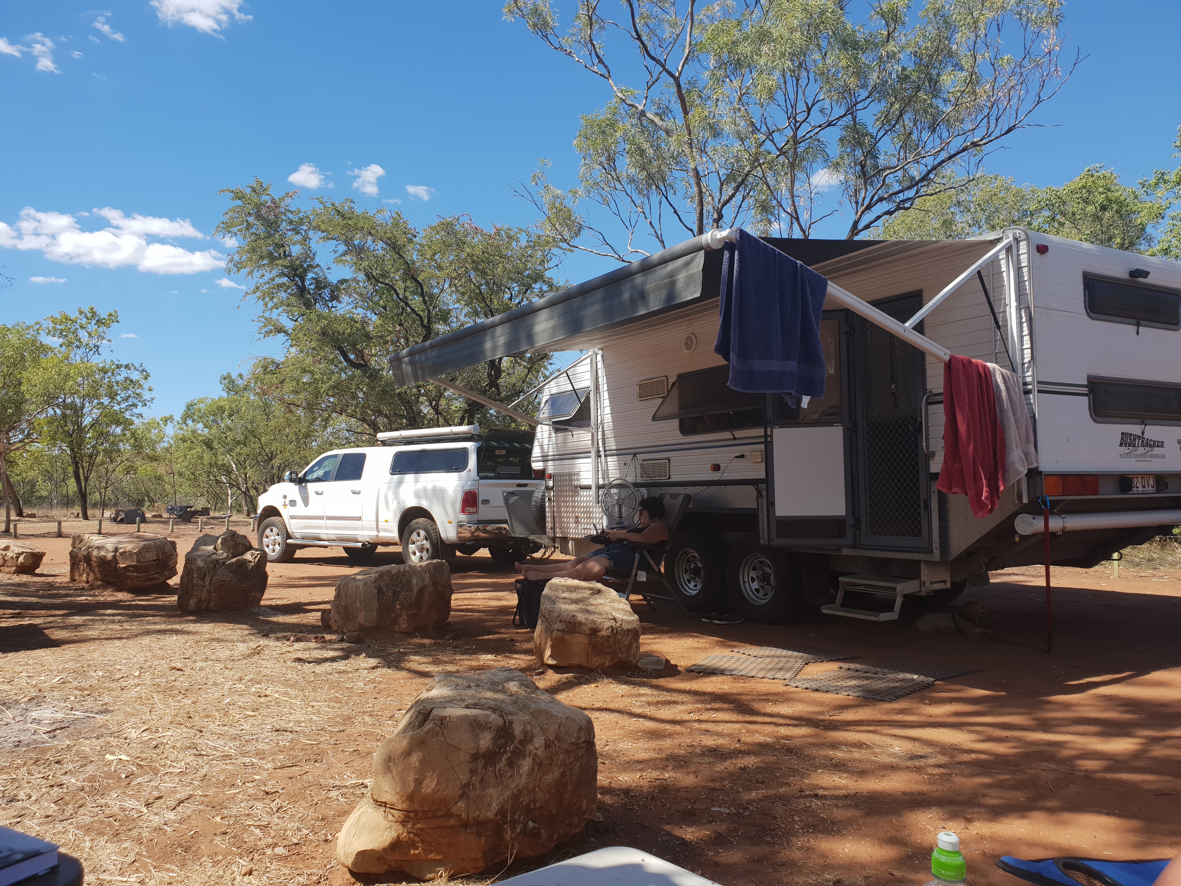 One of my favourite stops, not a large area but we all pulled around a semi circle and set up. Jock and I absolutely loving this free camping and fires at night.