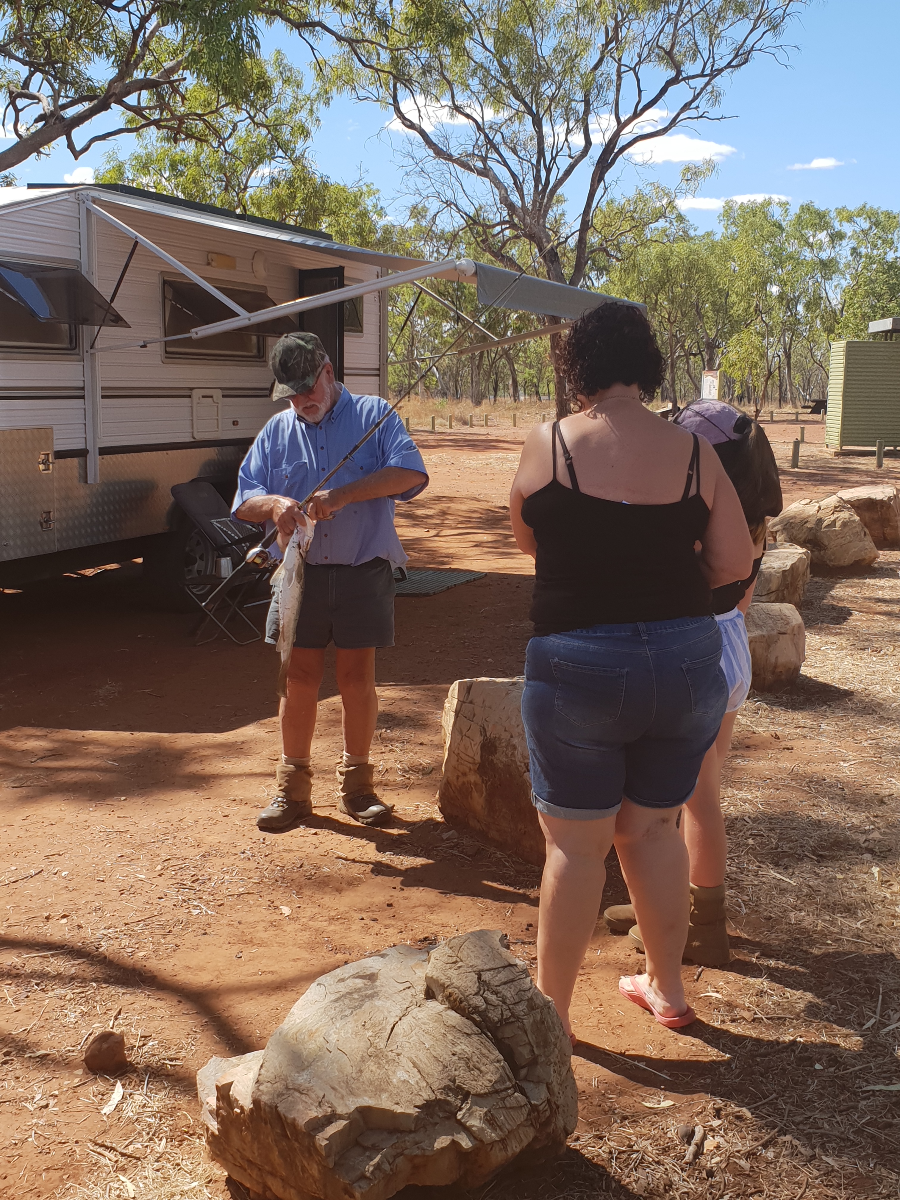 Mick and Jock were soon fishing in the small waterhole next to us and I sat with Emma to do some craft. Mick soon returned with his first fish a Barramundi Jock was well envious the challenge was on! I think they all fished until dark but no more fish were caught.