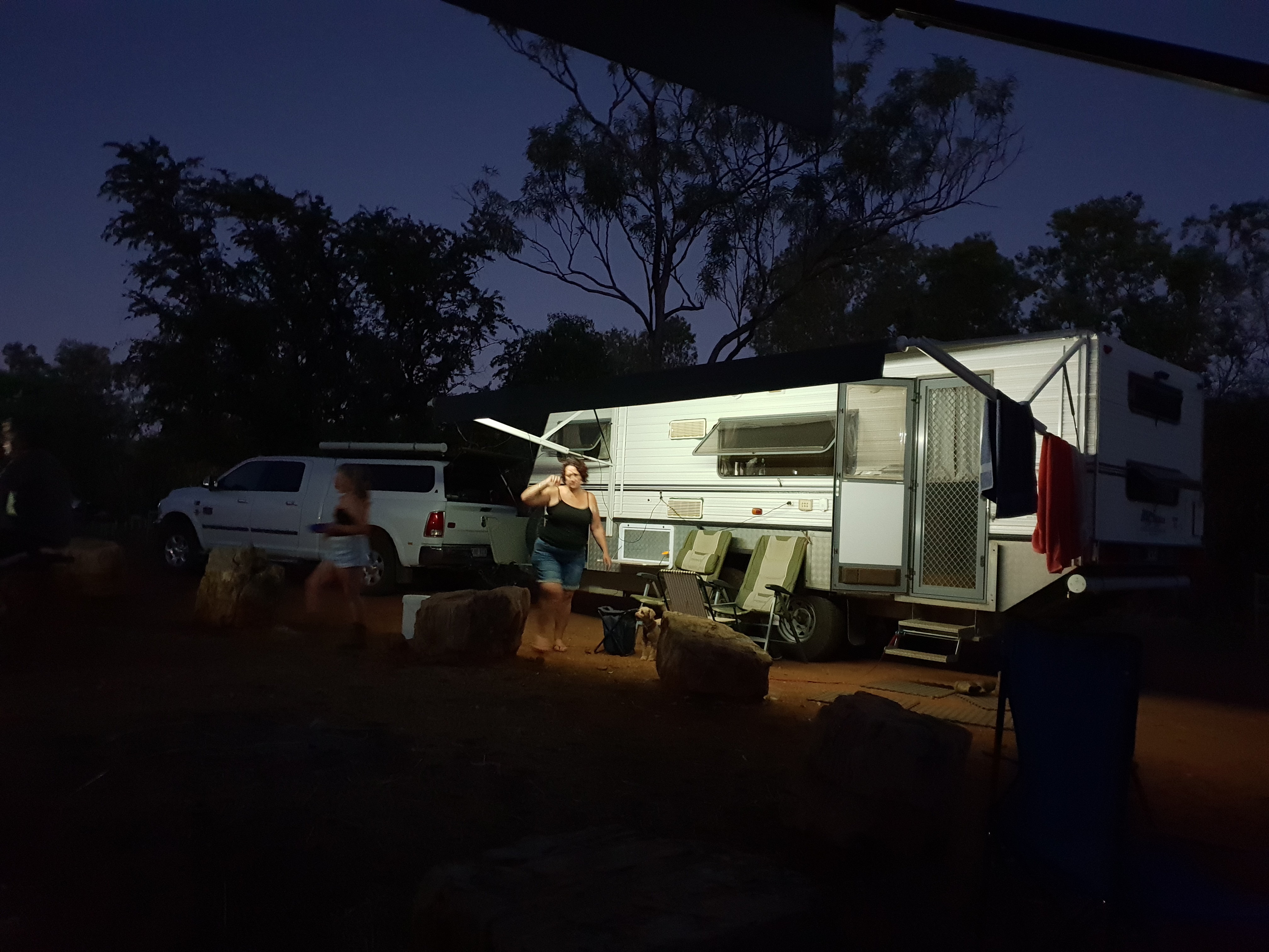 It was my turn to fall, backed out of the van and went arse over tit! Just missed the rock sitting by our doorway, I have never seen Michelle run as fast as I did then. Luckily Mick was just returning from fishing and helped Michelle get me to my feet. Mick spent his evening gutting his fish and preparing it for cooking. A great evening was had eating Micks fish and watching the stars.