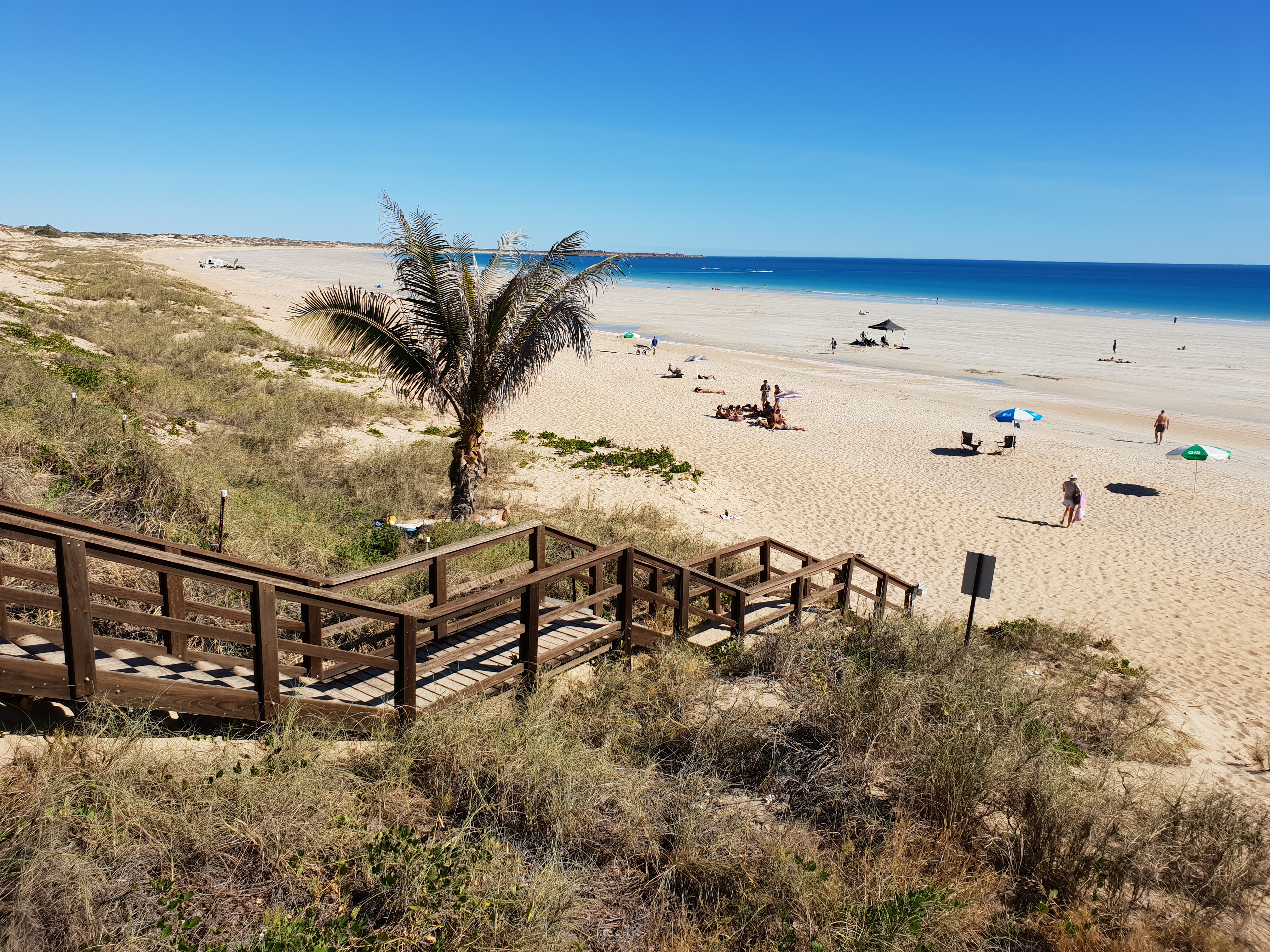 We booked in to Tarangau campsite at Cable Beach, so strange to be amongst a lot of people caravan to caravan. Michelle and Trevor are not next to us but over the other side of the campsite. We were lucky to get these spots everything is so booked out. We now have a week to get all the washing done, clean out the fridge and buy new supplies. First thing I did once set up was go to AE at the hospital. We were there quite a while but they were so organised and friendly. Result, an Avulsion fracture, not just a fracture, the complicated one! Typical. I have a 30 degree temporary splint on but have to see an OT monday for a proper splint that will be on for at least 8 weeks!! They are going to arrange a check up in Kununura on our way through there. I will just ring them when I know I will be there. No one felt like cooking tonight so we headed up to Cable beach takeaway and sat outside with the dogs. The food is really good and prices very reasonable.