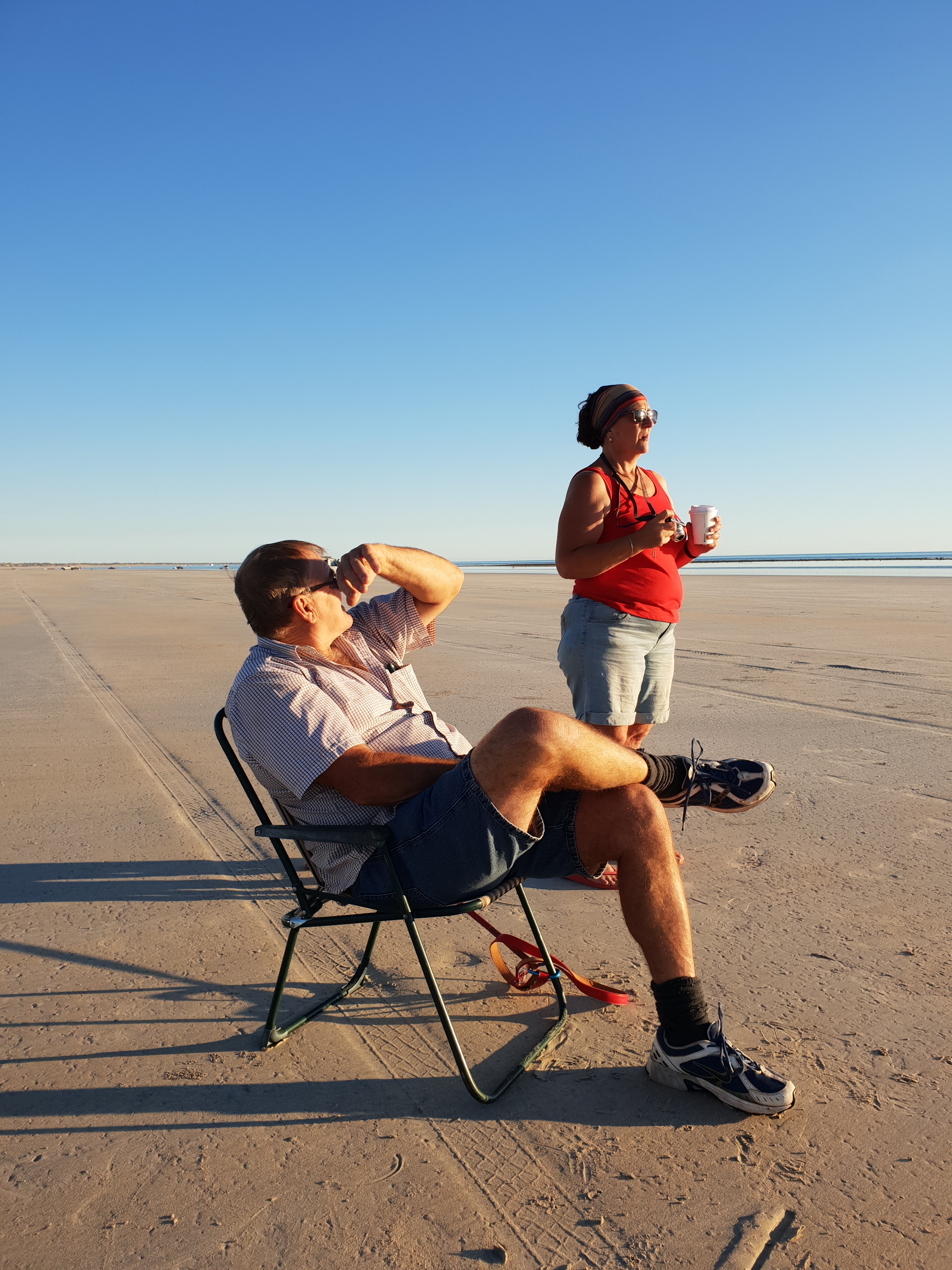 Emma woke us for the traditional Sunday pancakes. We made our booking for the Horizontal Falls, we go on Thursday, the boys have decided on a days fishing trip on Wednesday. We enquired about a camel ride on cable beach but they have a weight restriction and I do not cut it, nor Michelle or Trevor the only two that could go are Jock and Emma. Apparently ideally 85kg cut off for an adult, so hands up who is under 85kg?? So camel rides have to wait until Alice Springs or Ayres Rock, no weight restrictions there. All we were going to do today was drive about and explore Broome, we went to the wharf to suss out if they could fish off there and drove a dirt track along the coastline.