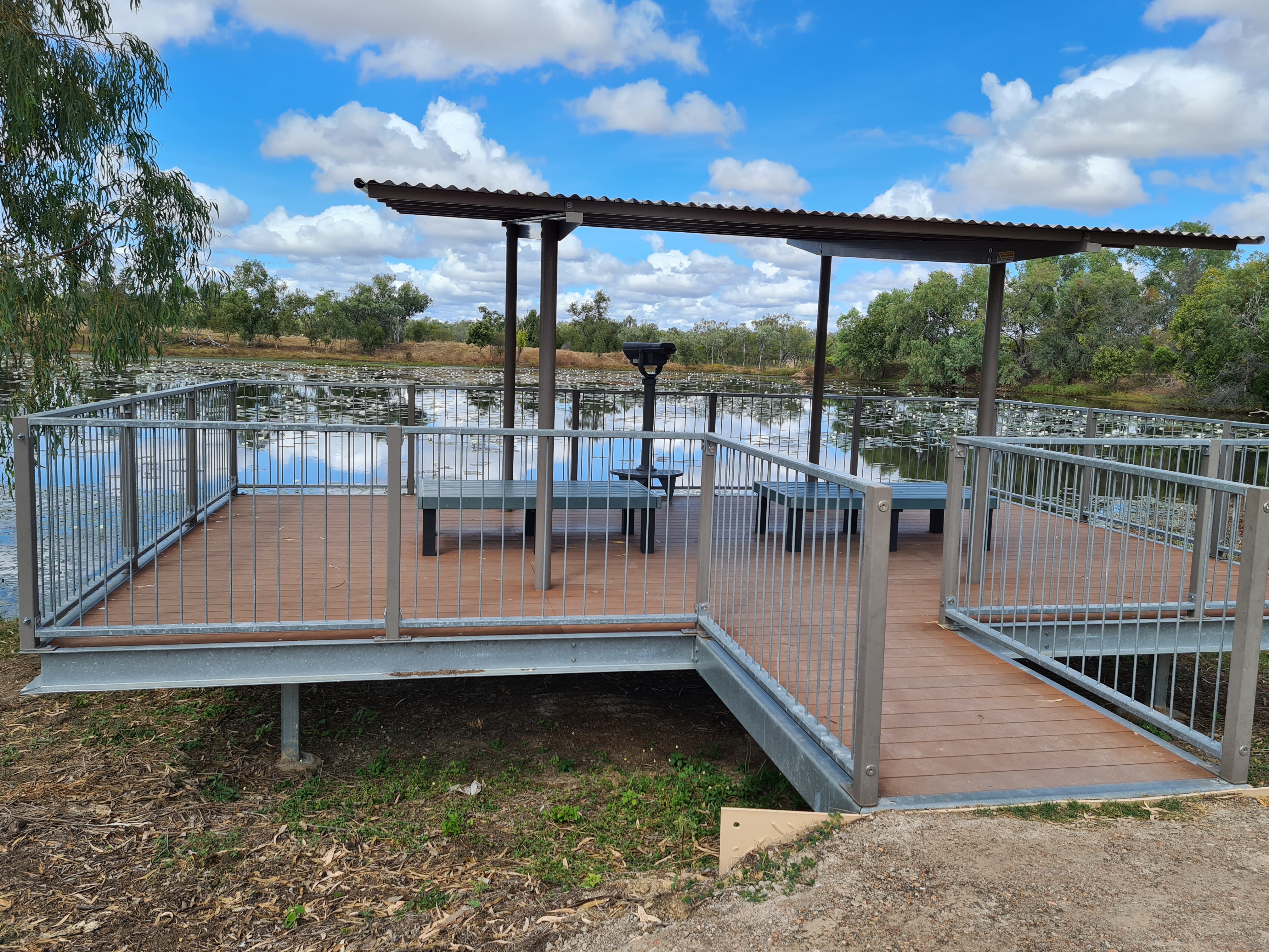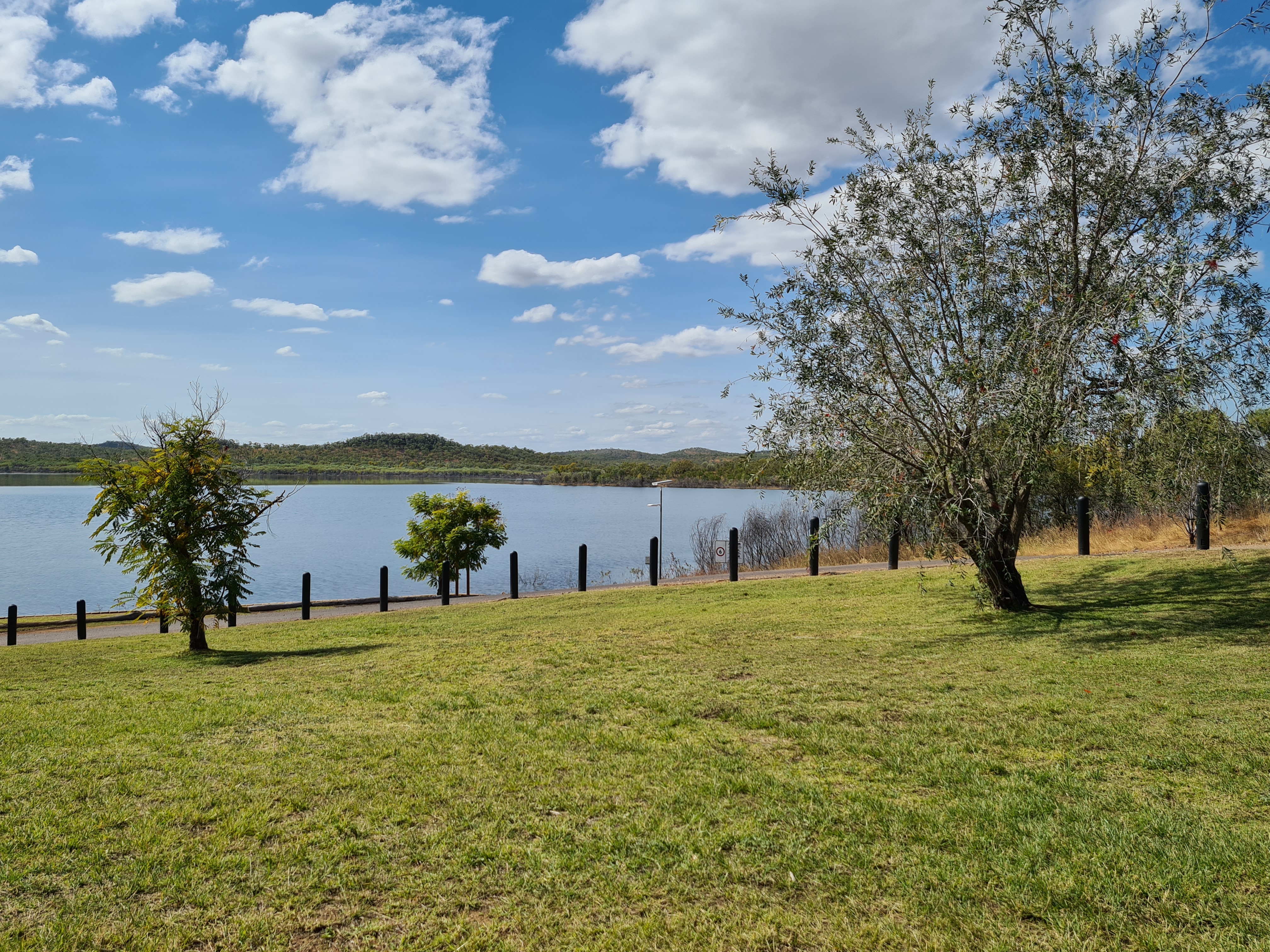 I don’t know how long we were there for but I know it was some time. The town has done a great job for us tourist to come and see and of course to keep their history alive. By now it was lunch time so we saw a sign for a dam a couple of K’s back so we headed there to have lunch by the dam. It was lovely but bloody hot! Luckily there was a little breeze so we sat in their picnic shelter and took in the scenery. On our way back down the hill we could see Croydon in the distance and stopped for a photo at the top of the hill.
