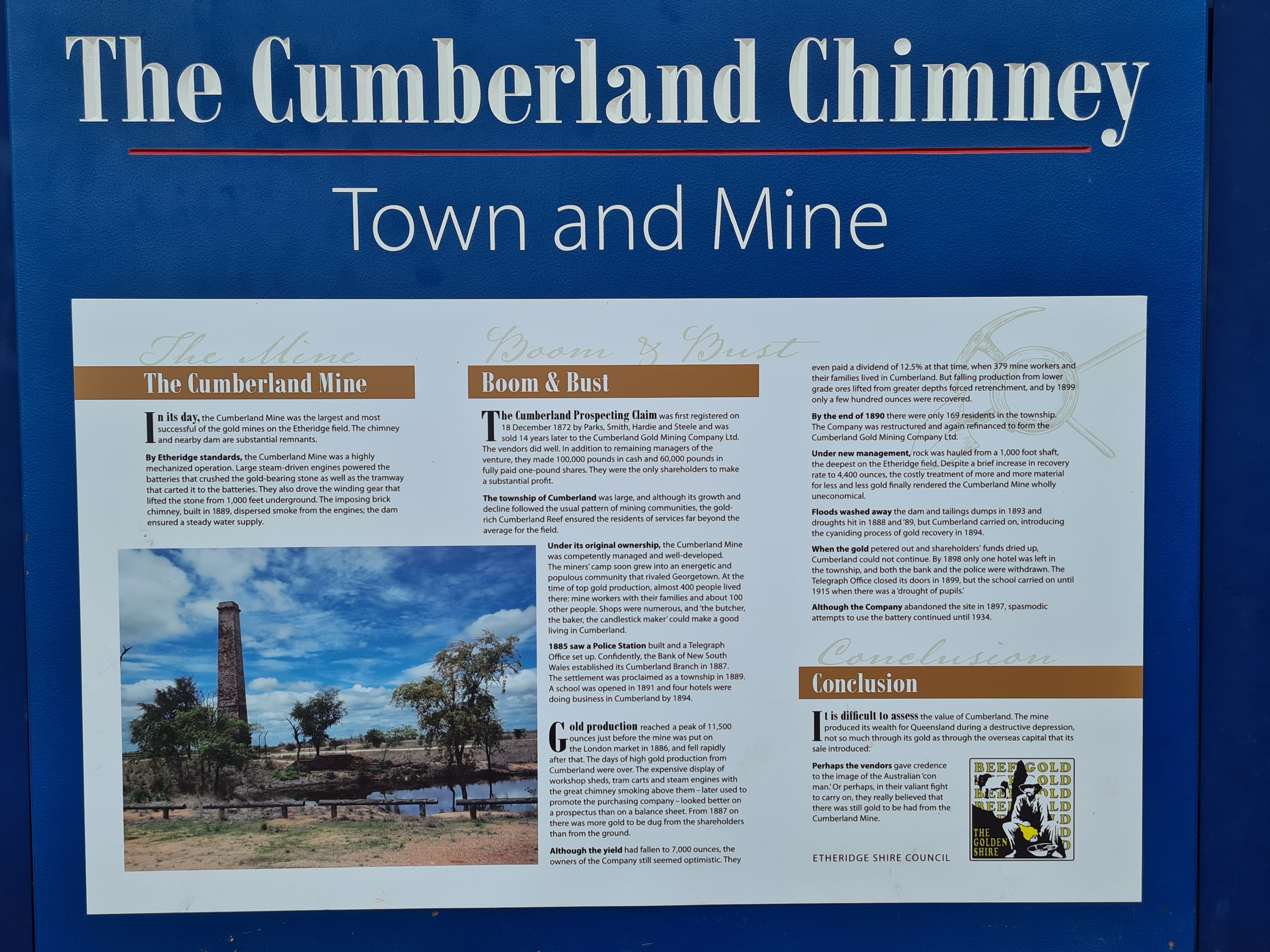 We had read about a free camp that we would pass by, it is on the site of an old mining town, a chimney had been left there to commemorate the town. We decided it would be point of interest and a chance to check out how good the free camp was for future reference. We didn’t want to stay there this time as we wanted a few more K’s under our belt today before we stopped. As it was Cumberland was lovely but all good spaces already filled. It is the site of an old mining town and the chimney has been left to commemorate the town.