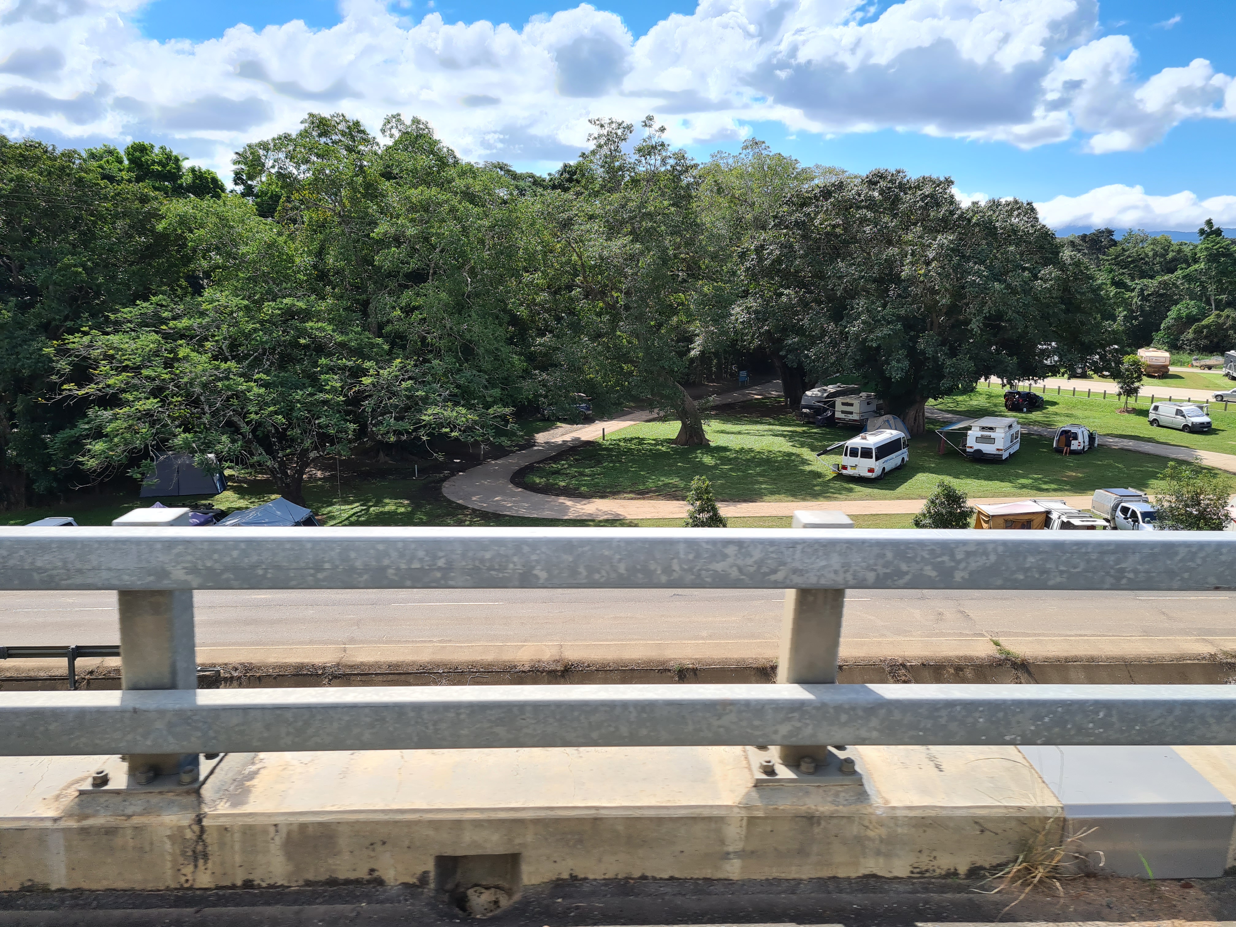 After Innot springs we made our way to Cairns to the free camp in Gordontown it is just next to Edmonton the suburb that Carol lives in. It is probably the best free camp we have ever been to, lots of facilities including showers. The drive to Cairns was great through the cain fields all the flowers were on top of the cain and the sun made it look all silvery. Looking out to the hills we could see some spectacular waterfalls in the distance.