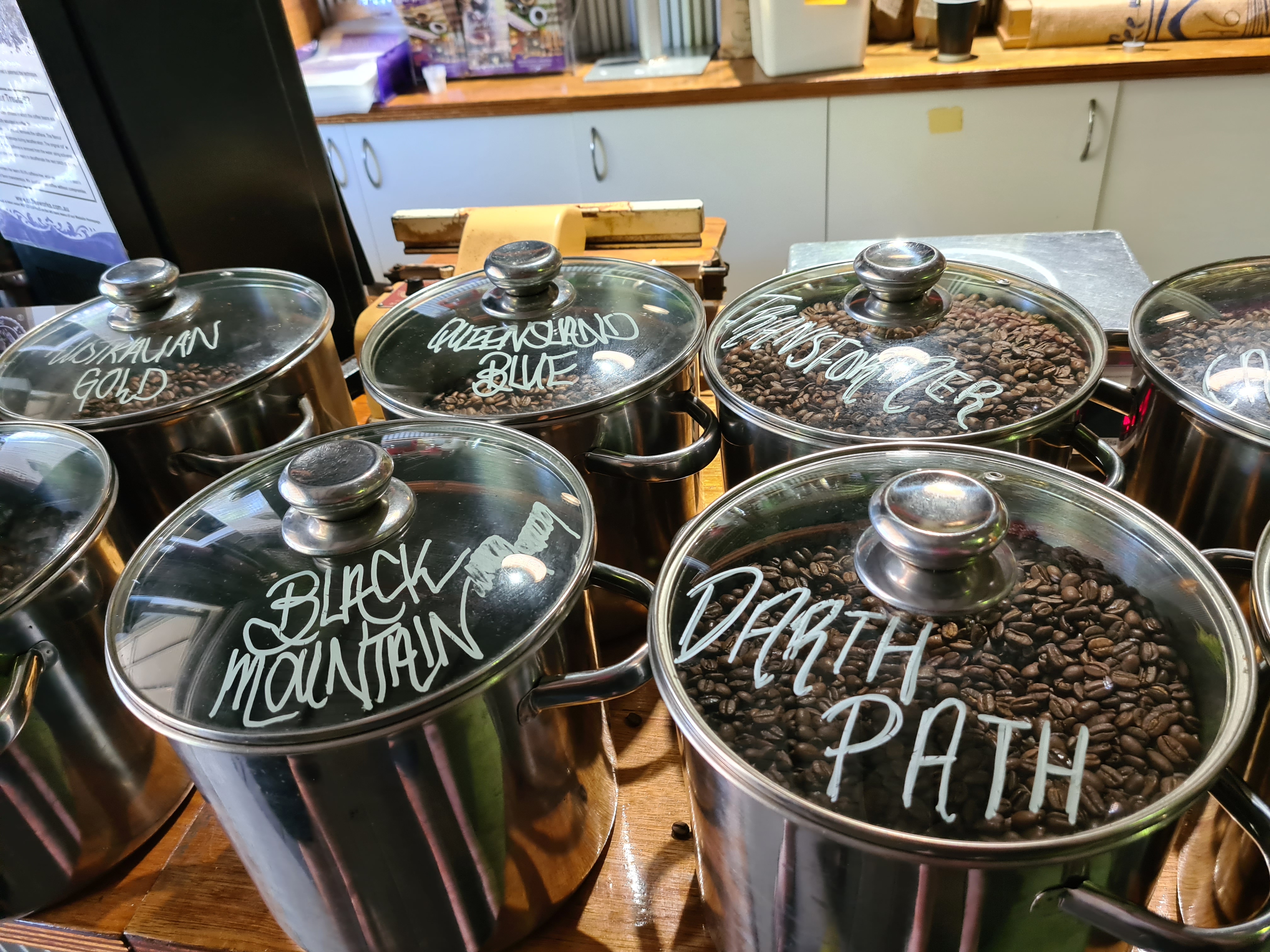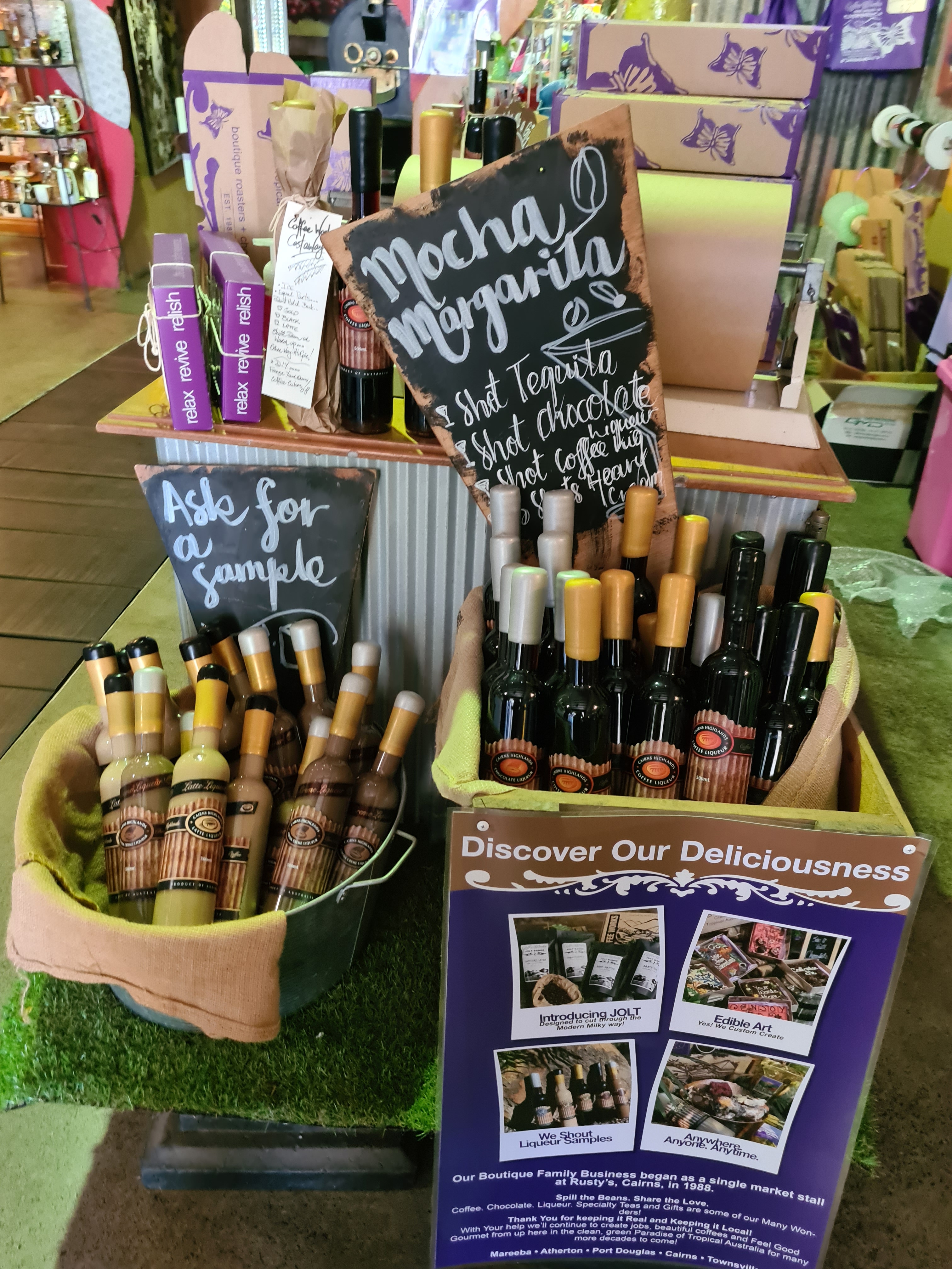 Our destination today is Coen we took the road through Mareeba and stopped off at Coffee works for a cuppa and lunch. The dogs were able to come with us to Coffee works as they have tables at the front with dog beds and water, my kind of people. The dogs all loved the attention they got from the passers by. Michelle and I went in and had a look around, lots of lovely mugs and all at good prices, of course I bought myself one. They sold all sorts of coffees and coffee liqueurs, the liqueurs were a bit too exy. We did get to taste them, the young waitress brought us over a taste of all of them.