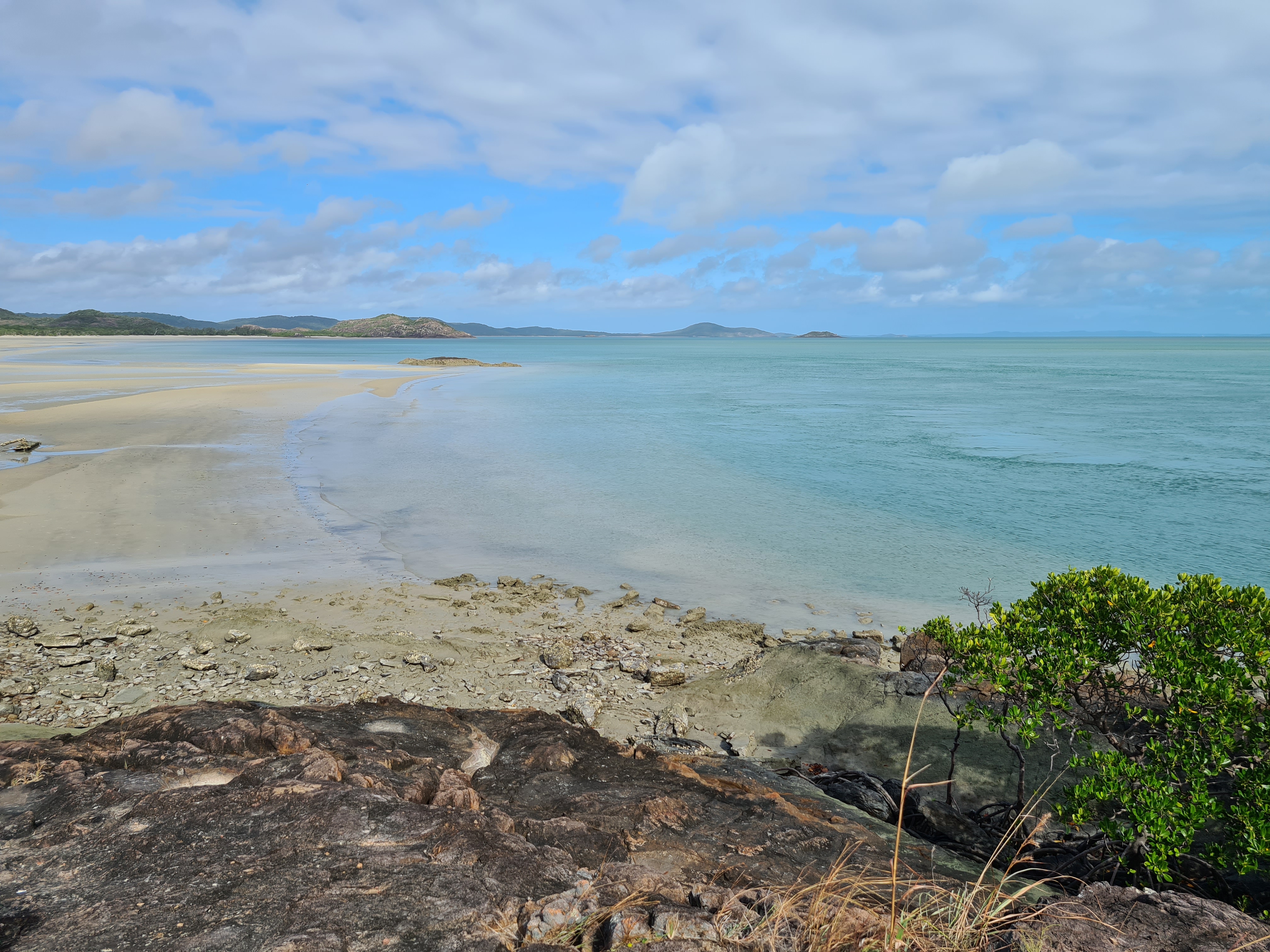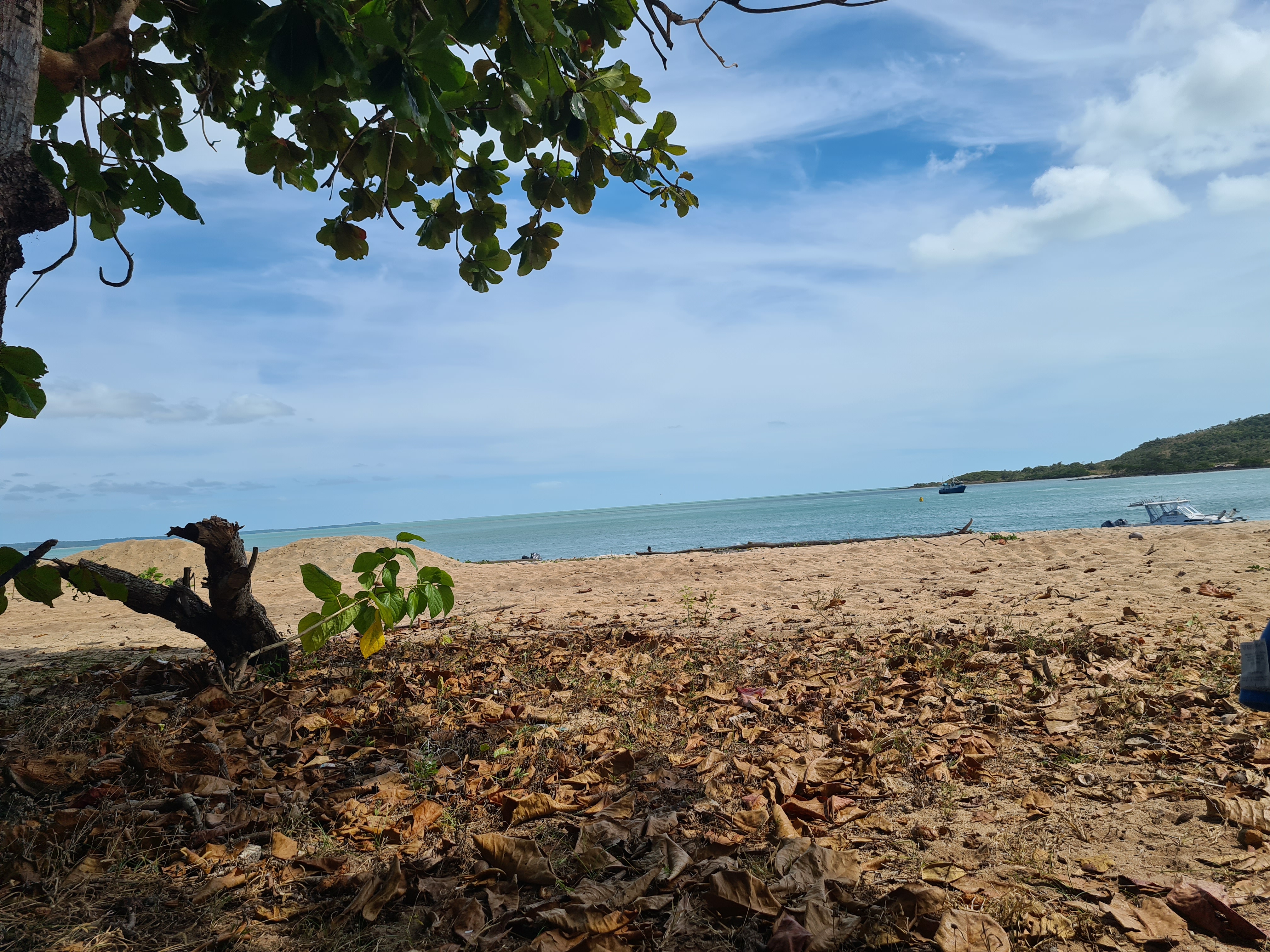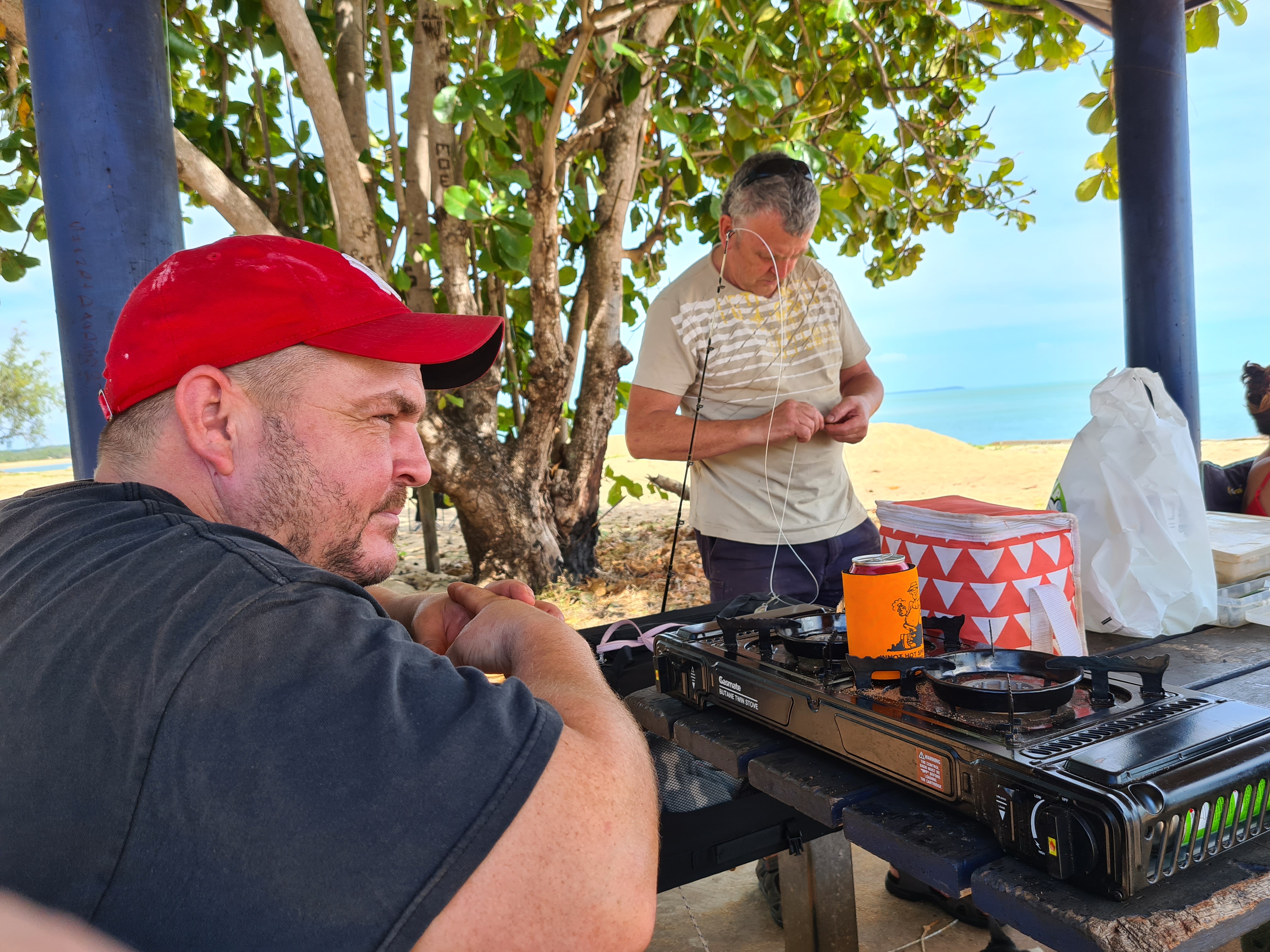 We had planned to stay in Bamaga but when we got there, well, it was not what we were expecting!! Don’t really know what we were expecting really but certainly thought it would be bigger than it was. No sooner we were in Bamaga we had come out the other side. We all decided we would continue on and go see what Seisia was like, we had had lots of people telling us to go and stay there as it was lovely. We drove towards the Jetty and as we pulled in to the car park there we all just said, “Wow”. It was stunning, a lovely wide beach that went for miles and an island in view. We saw some people camping at the back of the beach but could not see how they got there as there were bollards stopping cars from entering. Jock went and asked one of the campers and we went about booking a site. Set up didn’t take long and we got the perfect spot at the beach with a covered table area that we could use, perfect. As we sat there looking out to the sea and all the scenery we could not believe our luck a few days here would be just the ticket.
