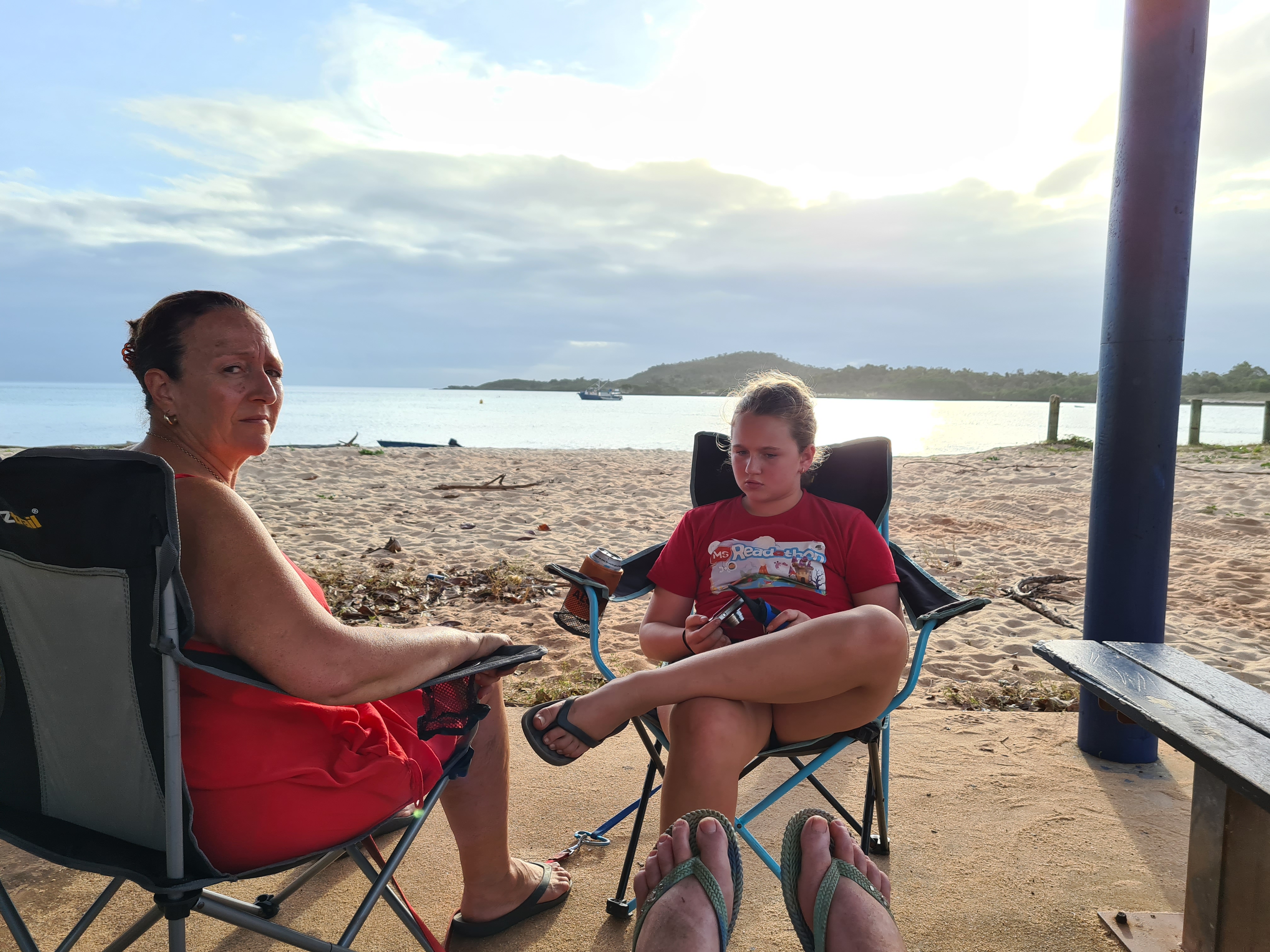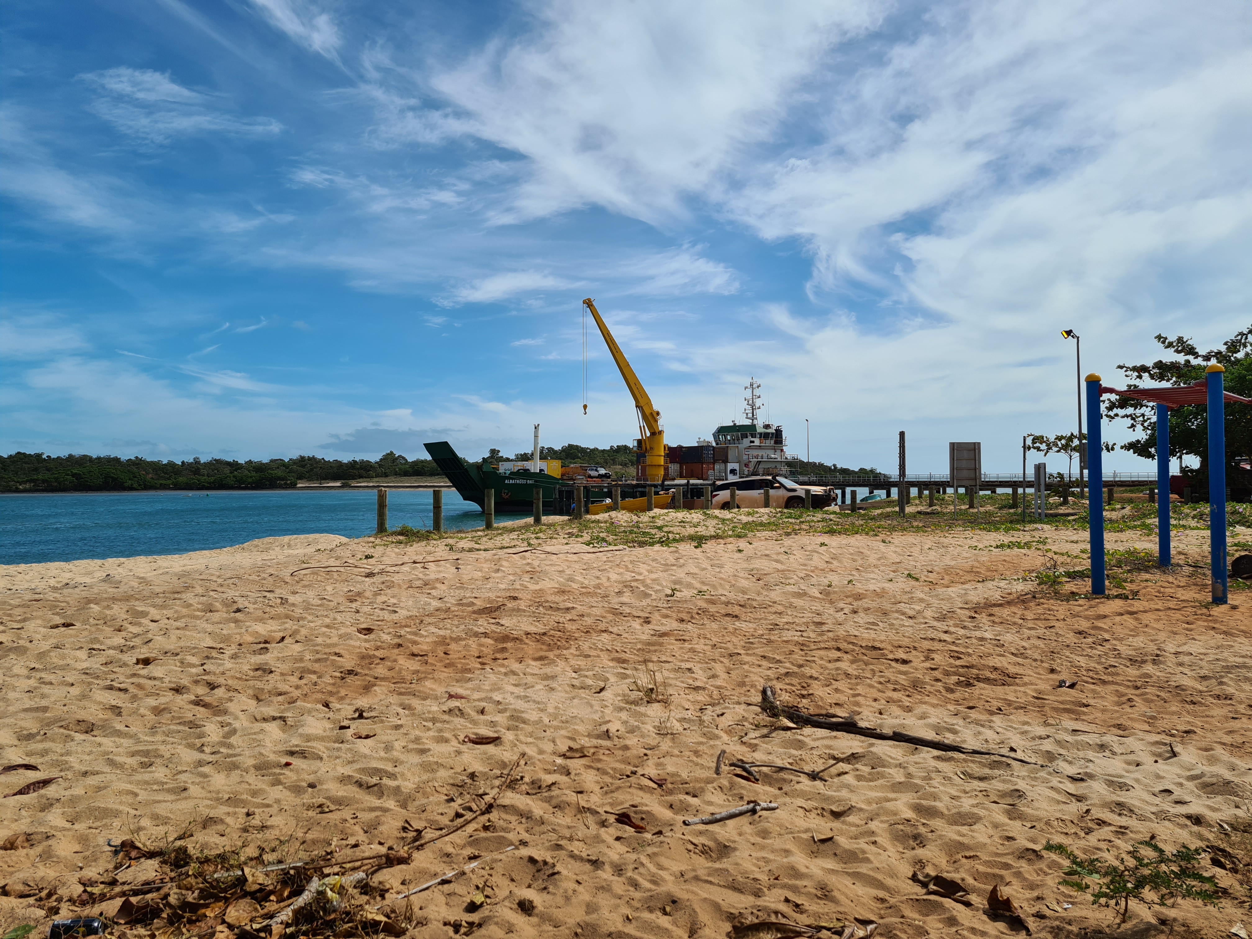 We spent three glorious days at Seisia, Jock mostly fished, not much was being caught as it is not the right time of year. Emma went over with Jock a few times, all Jock was catching was bait fish which he used to try to catch the bigger fish. There was only one decent fish caught there in the time we stayed and it was not Jock that caught it! The pier got closed for 24 hrs as ship came in and was offloading supplies and reloading. We sat watching the whole process, it was quite interesting and surprising just how long it takes to unload and reload.