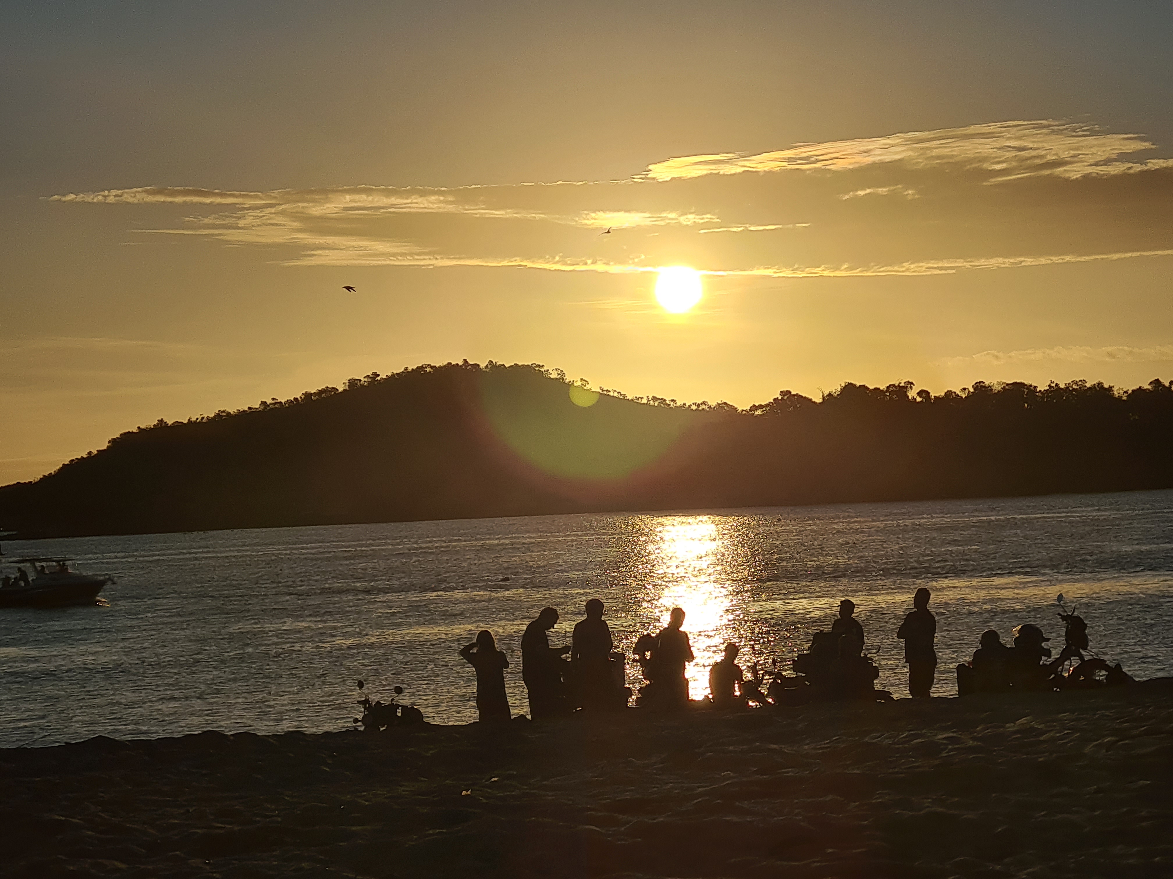 We tried to book to go out for a meal but everywhere was full. So we decided that the “restaurant” at the campsite had good reviews and it was served on first come first served and if all tables are full we would just bring it back to the vans. There were tables out all over the grass overlooking the beach and you made your order at the hatch. So once we were all settled in and Jock, Scott and I had had a quick drive around to see what was about we headed over to the tables and luckily got one. By the way, the little drive about we took, it was definitely little, Wiepa is far smaller than I had expected. We ordered our meals and I have to say the reviews were spot on everything was very nice. As it got dark the lights came on, it looked really nice with them strung between trees, just those string of clear bulbs but very effective. We saw the sunset, had an ice cream for desert and headed to bed.