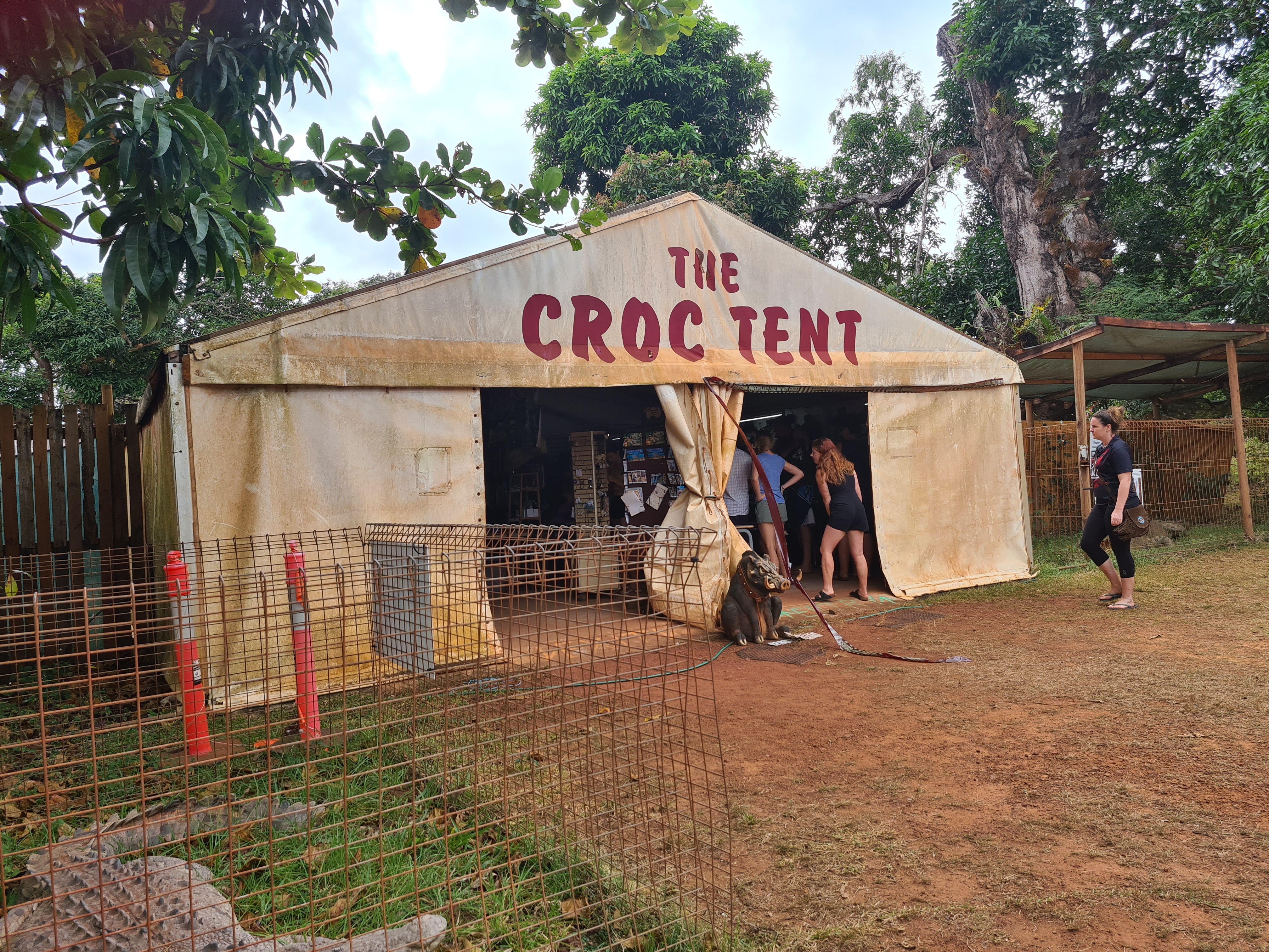 We had a sit on the rocks and watched others arrive and take photos, we are glad we did as we witnessed a proposal and one young man chucking a moonie next to the sign. We all had a laugh and he quickly pulled up his daks. Now it was time to negotiate the rocks back down to the beach! Of course by now I was in terrible pain but had to get back to the car. Scott once again helped me a lot and before we reached the bottom of the rocks Jock made his way back to the car and drove it over the beach to the rocks. I was so pleased I managed it but oh so pleased I was once again sat in the car. On the way back to the Bamaga we saw The Croc Tent famous for it’s souvenirs, Jock and I went in but it was packed I was soon out of there. We did manage to buy a couple of croc. t-shirts for the boys.