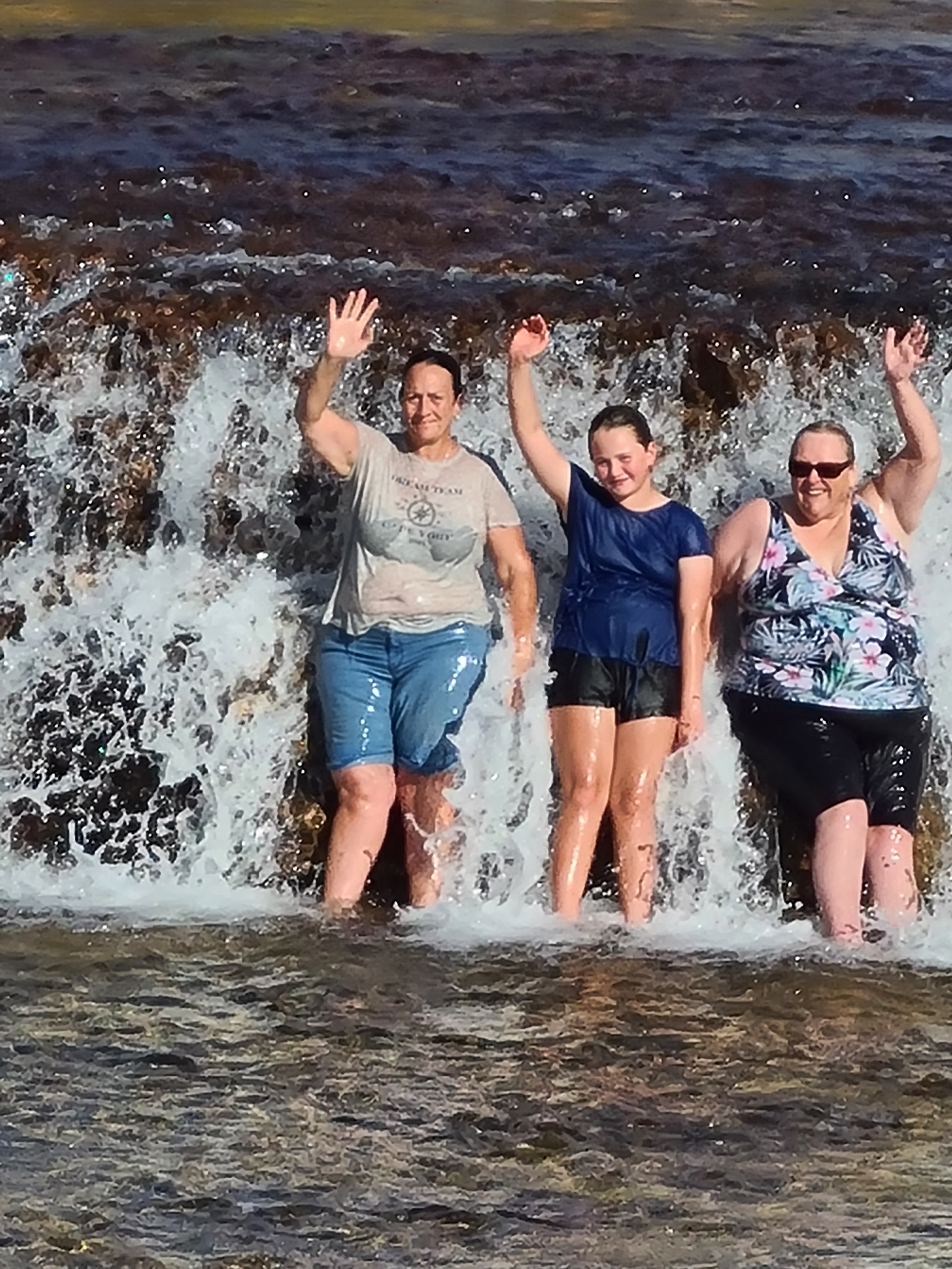 Who could resist that hey? The water was cool but not cold we easily walked into it, getting out would prove harder. Michelle, Emma and I got in first and swam over to the falls themselves. Jock followed and Trevor finally gave in and got wet too. What a beautiful place, thank goodness the fellah at the campsite told us about them. The men were first out of the water, us girls just wanted to stay there and we did for as long as we possibly could. I reckon this was one of the highlights of our trip.