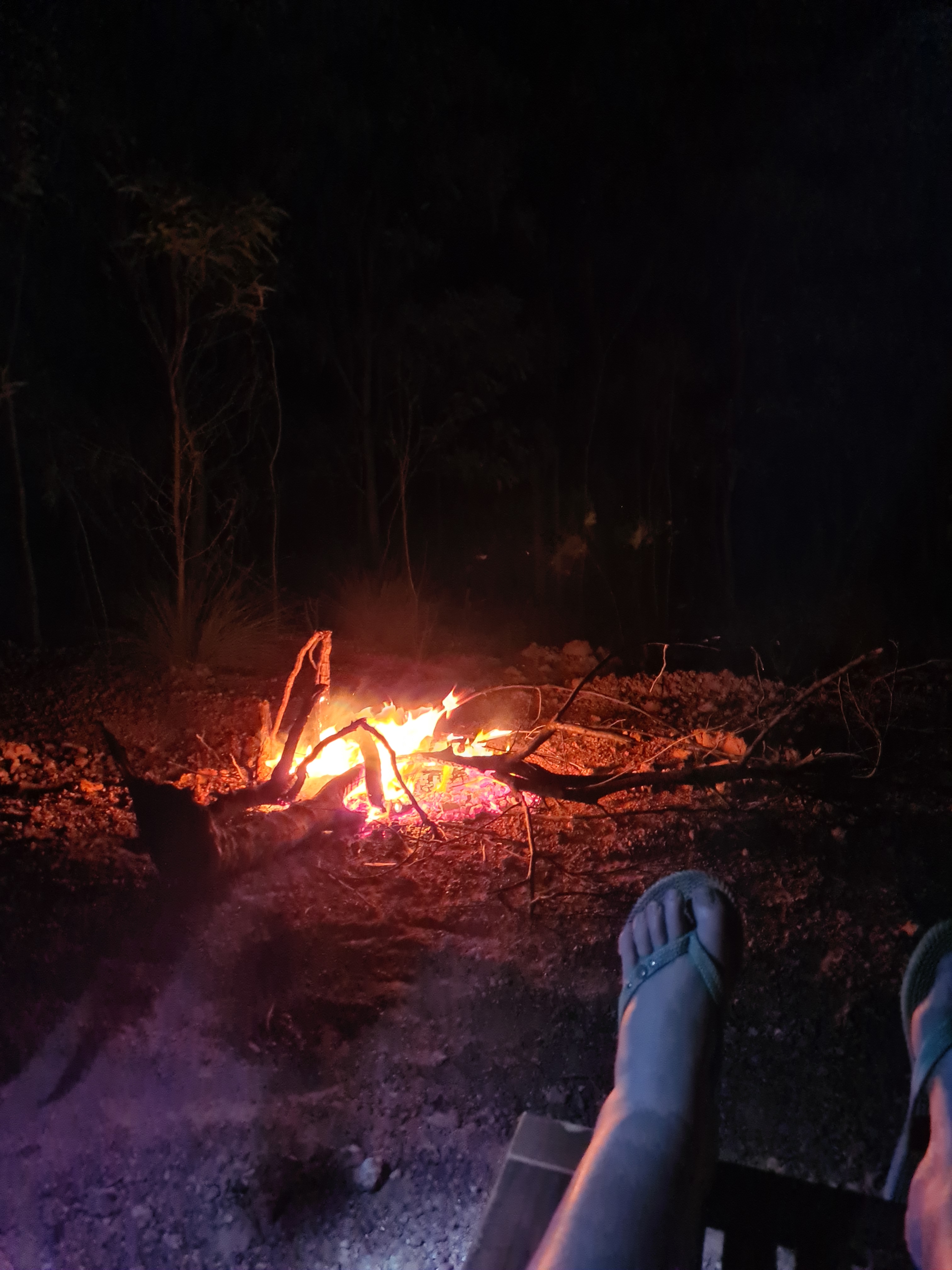 Alas all too soon we had to leave with plan of maybe coming back in the morning. But first I had to get out of the water!!! You know I can’t kneel, well it was some job getting out. Michelle, Jock and Trevor got me out eventually, how? Well lets just say, “what happened at fruitbat falls, stays at fruitbat falls”. Would I do it again? Hell yea! Our camp for the night was just up the road in a gravel pit. We were soon set up and sat by the fire talking about our adventurous day. Emma and I had smors, a flame grilled marshmallow squished between two chocolate biscuits, yum. All of us were very tired and crawled in to bed early ready for another day on the road tomorrow.
