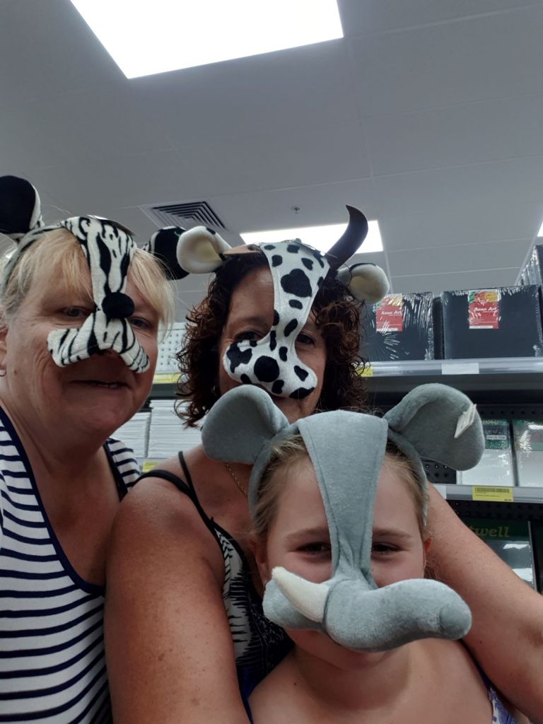 Michelle, Emma and I had a great day out on the town which after the remote places we had been was very nice. We did not really need anything it was just really a look see but of course as soon as we spotted an Op shop we were in there and buying!! I got a lovely new expensive top for a couple of dollars and Michelle and Emma bought items. In the cheap shop we decided to try a few hats and masks on, as you do on a girls day out! It was a great relaxing therapy day for us all.