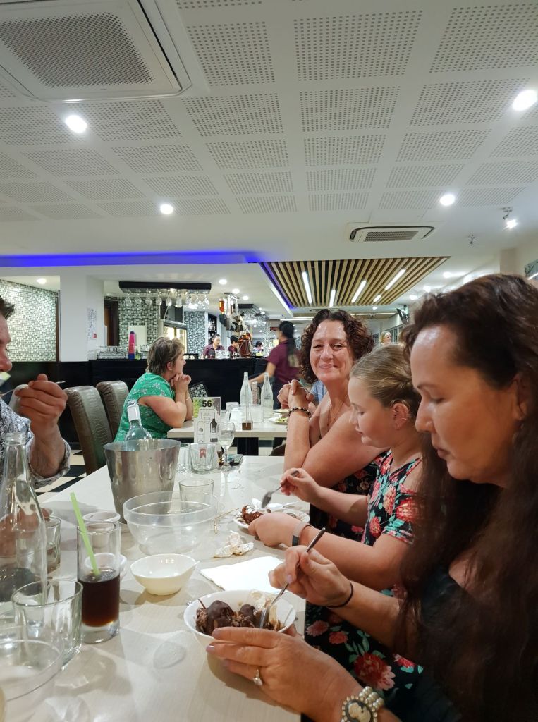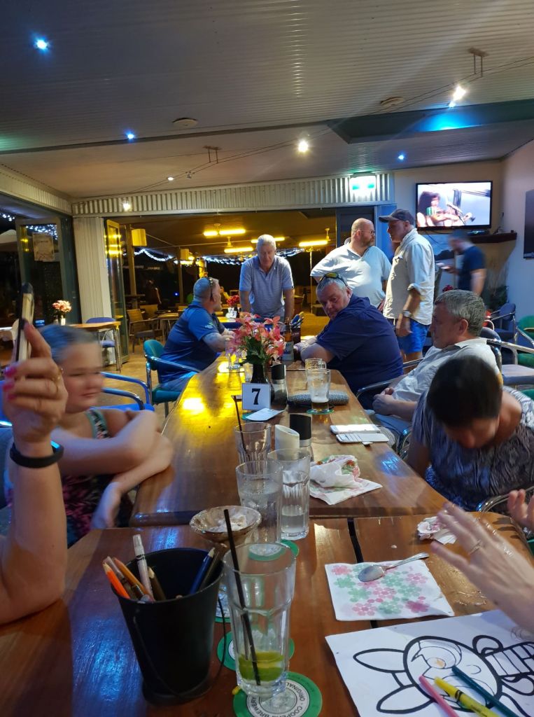 The night before Michelle and Trevor had to fly down to Brisbane for Jim’s wedding we met Grant and Sue Ellen at a restaurant called Seafood on Cullen. My initial thought was it would be a waste of money for me as it is a set price for a smorgasbord well I soon changed my mind, I loved all I had and Jock certainly had the rest of my share. It is a lovely restaurant and I would recommend it to anyone. Actually it was nice to be in nice clean respectable clothes on a night out in a nice clean restaurant. This trip has been so dusty and we are always covered in red dirt and here we are all brushed up and presentable made a nice change.