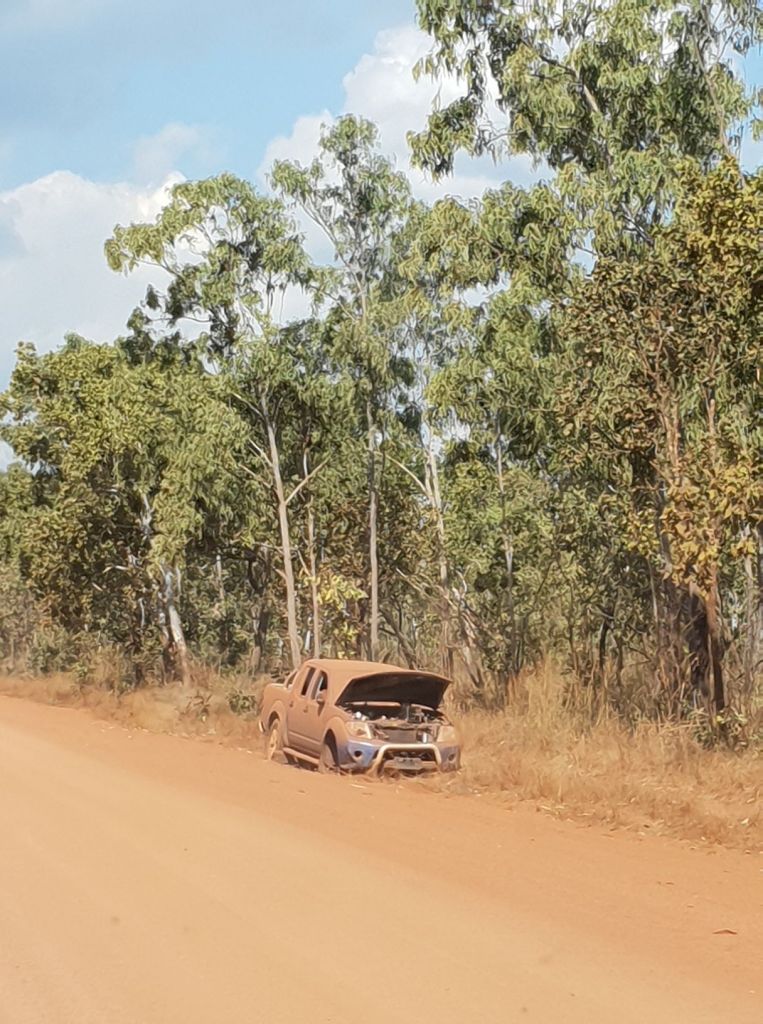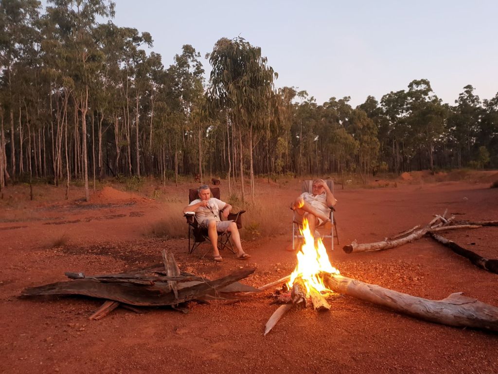 Our next fuel stop was at the settlement of Bulman we had a phone signal there so took the opportunity to phone Joy and wish her a happy birthday, it was her 70th. We had brought balloons etc with us to celebrate but it was her and her husband that ended leaving the Gibb river road before us and headed home early. We checked out Wiki camps and found our stop for the night, it was a gravel pit a lovely big open space in the trees all to ourselves. No sooner had we stopped a fire had been lit, the best thing about free camping, the camp fires. We all sat about and reminisced over the days drive we had loved the whole experience and our excitement was obvious, tomorrow we would arrive in Nhulunbuy.